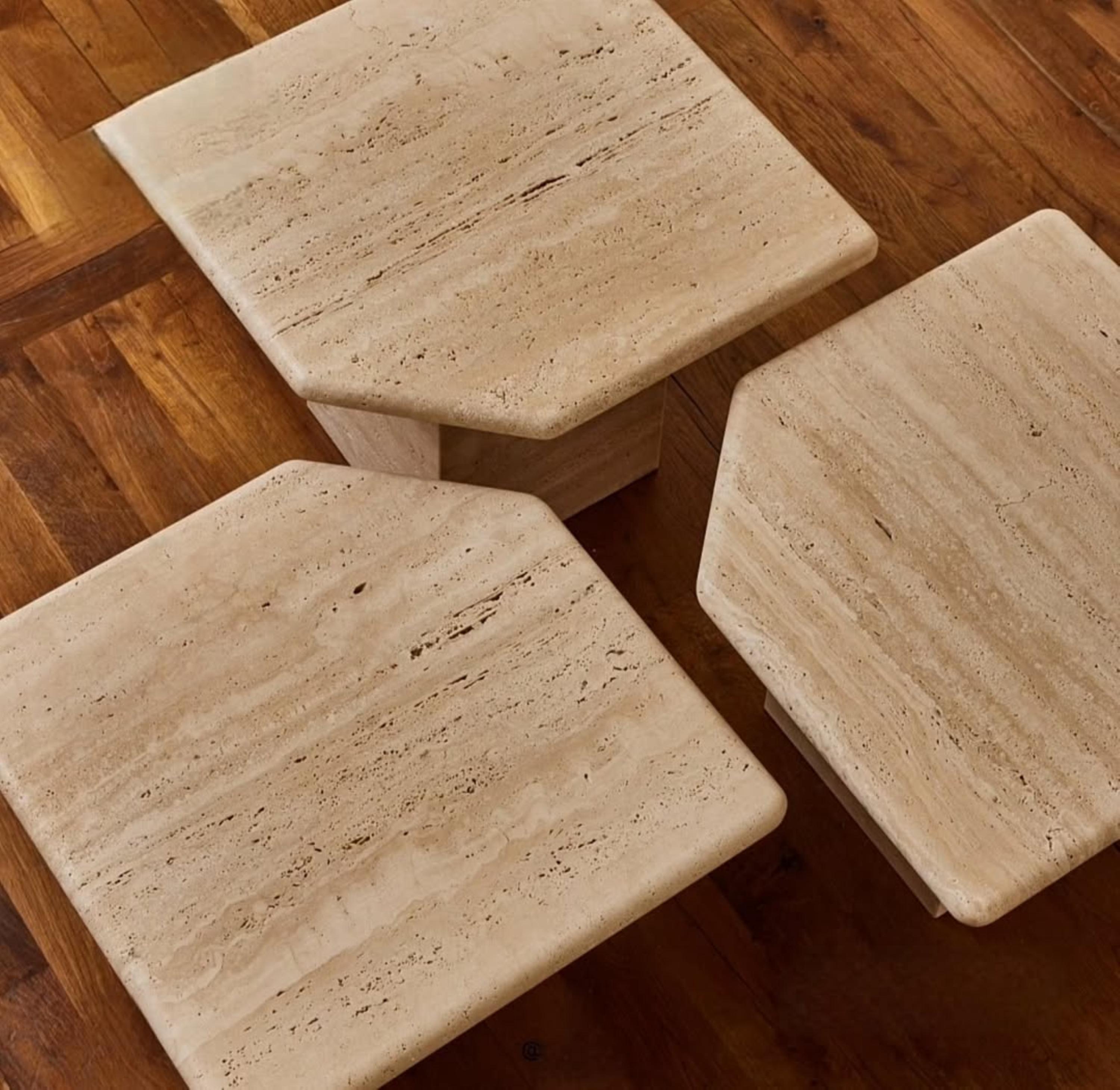 Cream Travertine Nesting Coffee Tables: Modern Cocktail Table Set