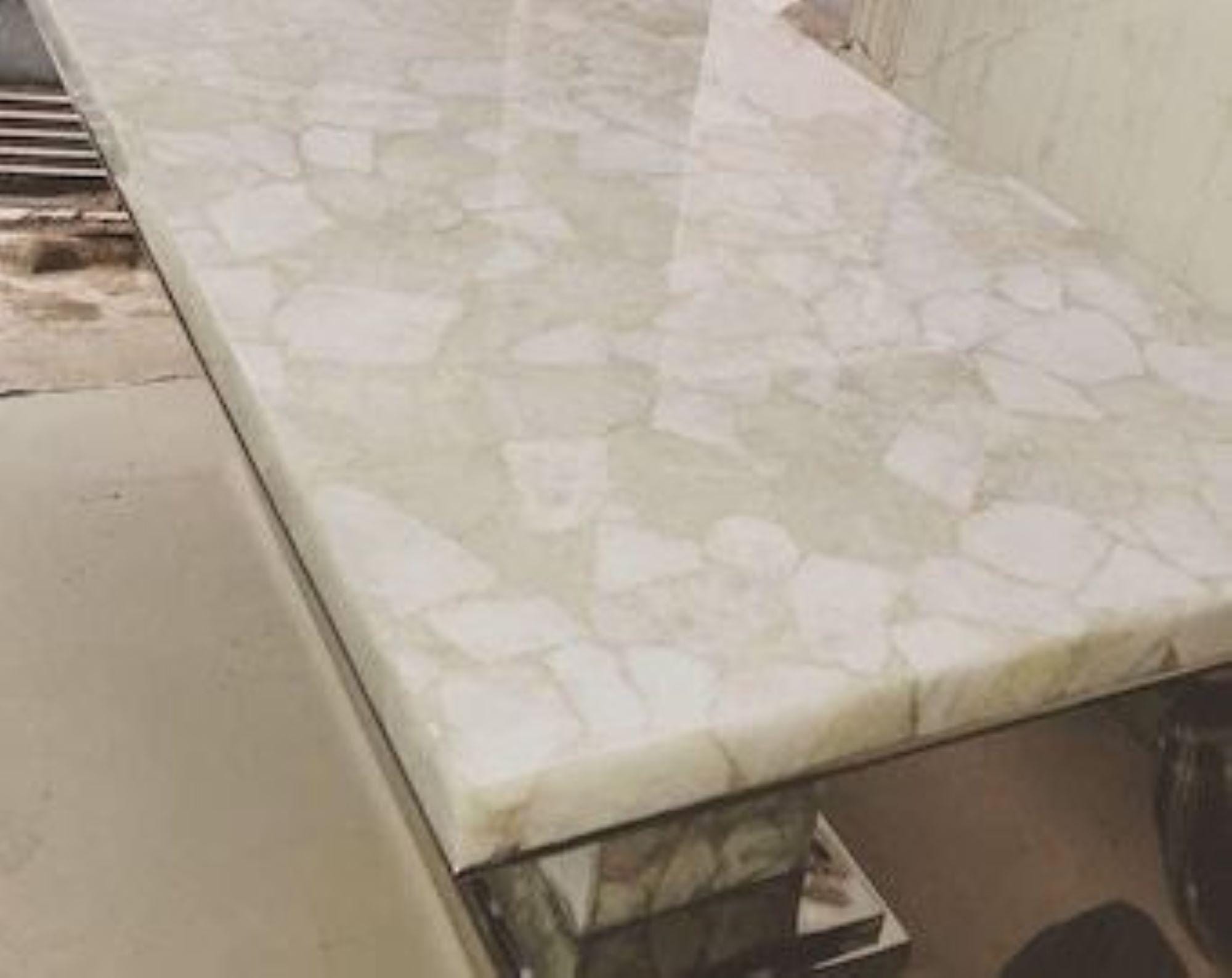 Enhance your space with this elegant and contemporary marble table top, combining functionality and artistry for a timeless addition to any setting.