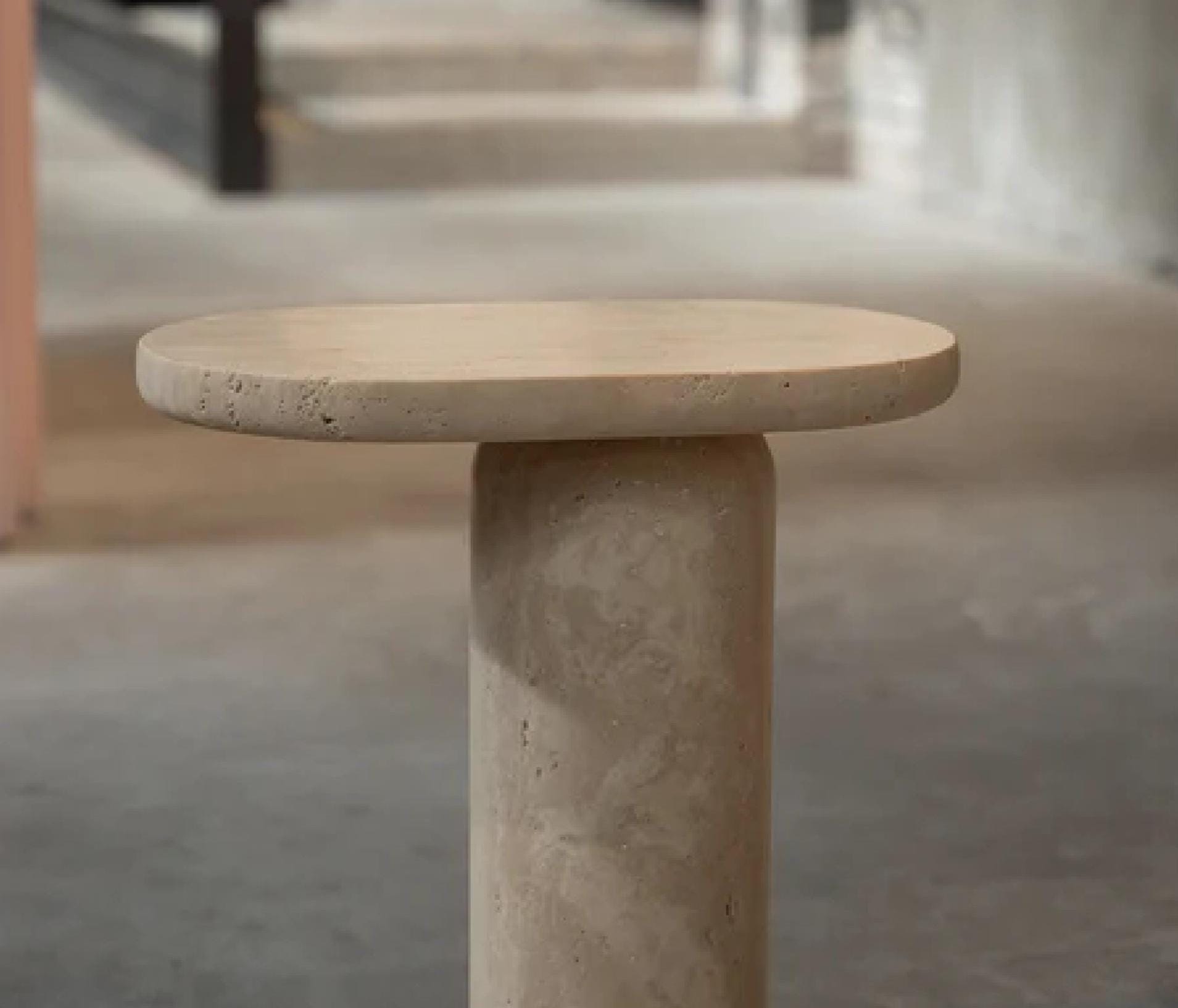 Round Travertine Stone Side Table / Minimalist Pedestal Accent Table