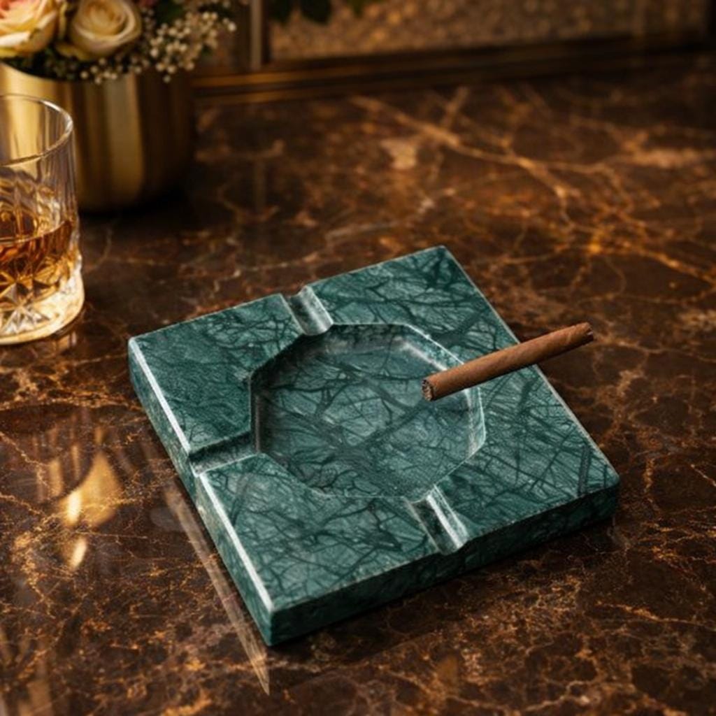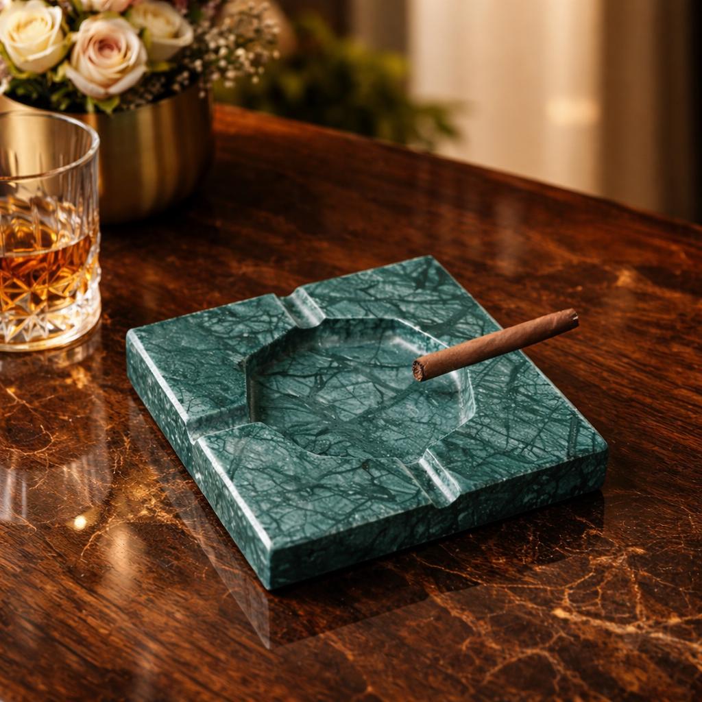 Handmade Green Marble Ashtray – Luxury Natural Stone Smoking Accessory