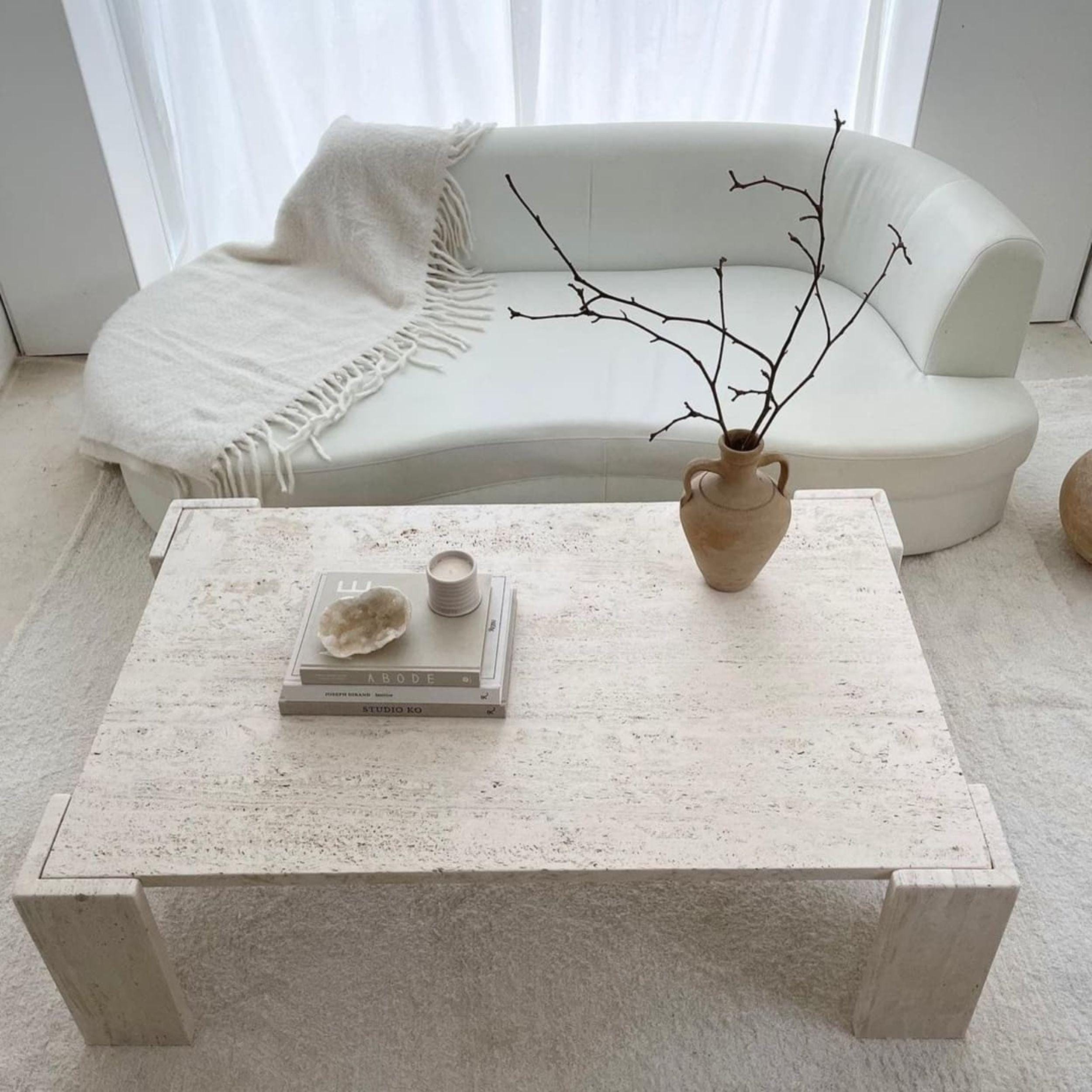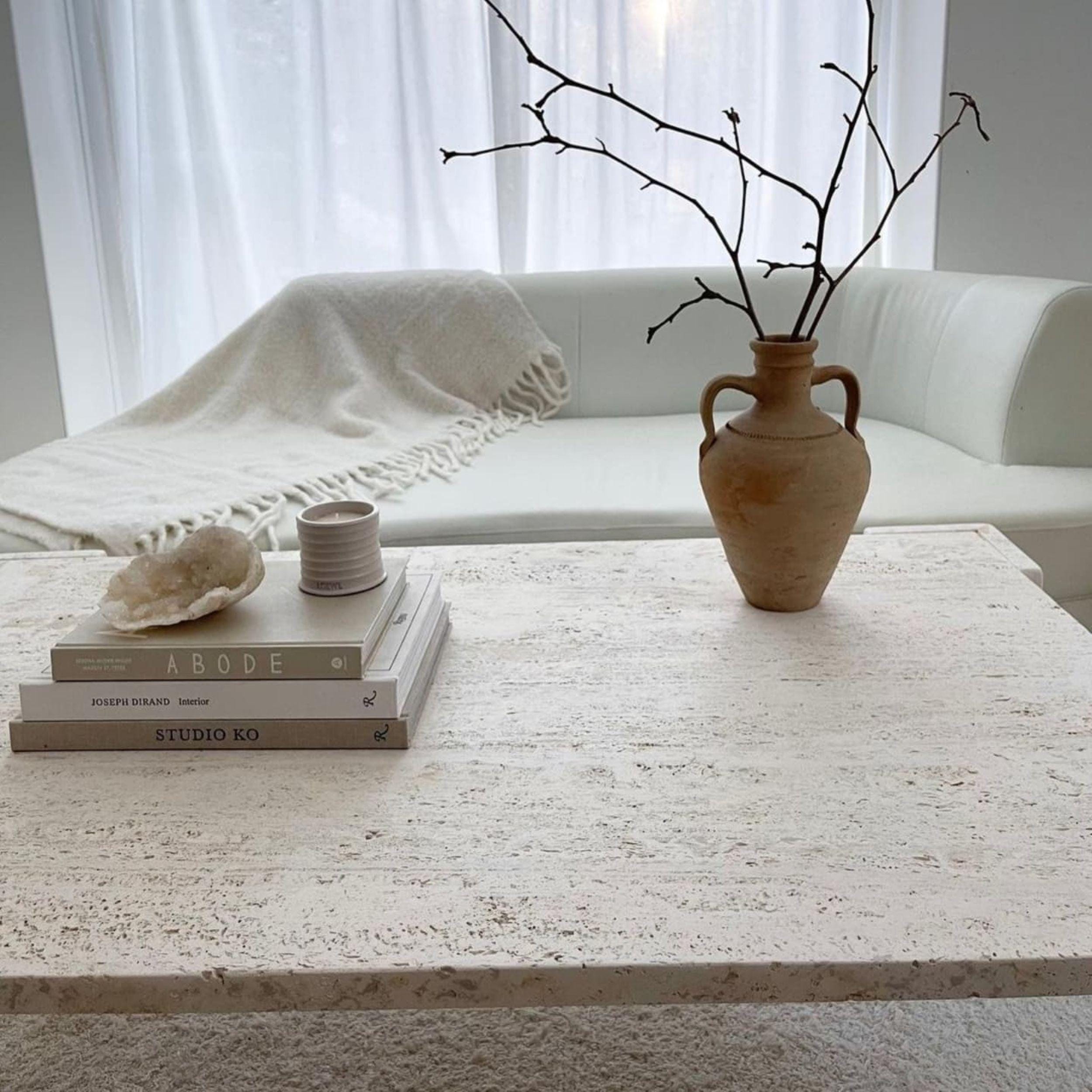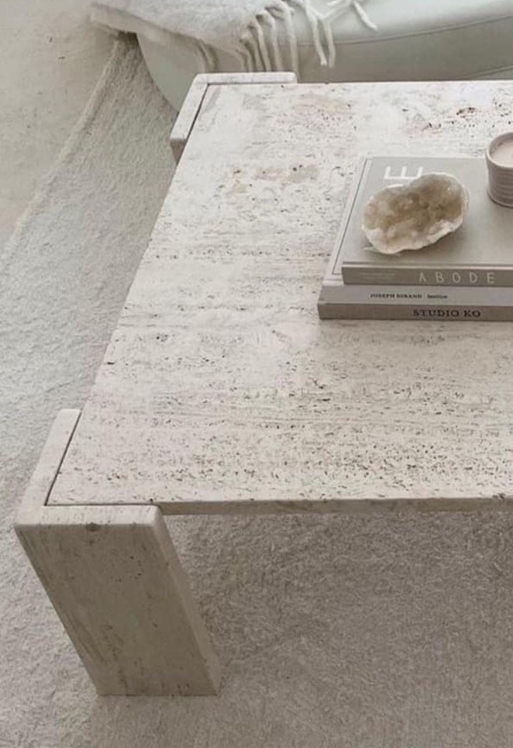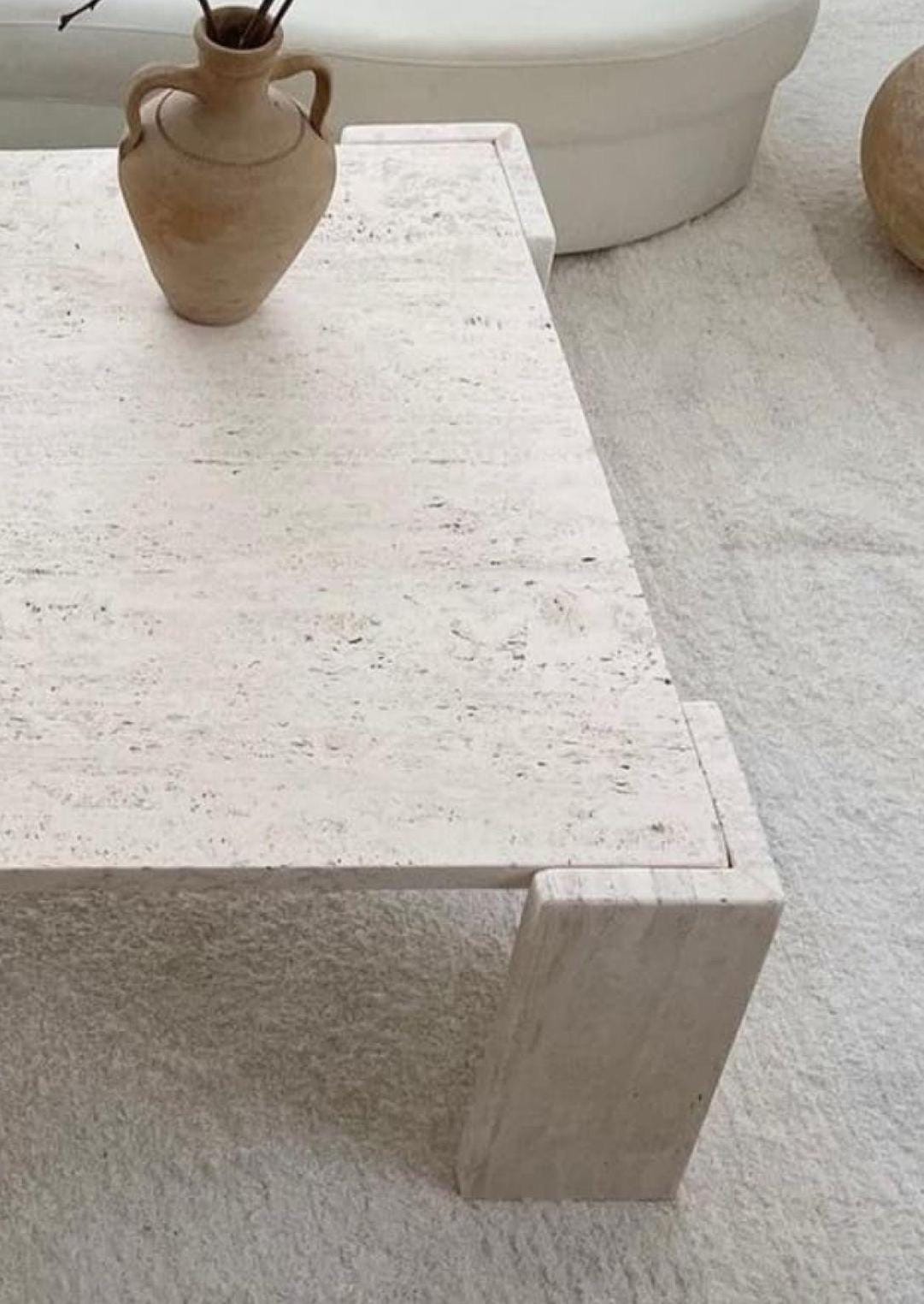 Handmade Rectangular Travertine Coffee Table – Minimalist Modern Stone Centerpiece for Living Room