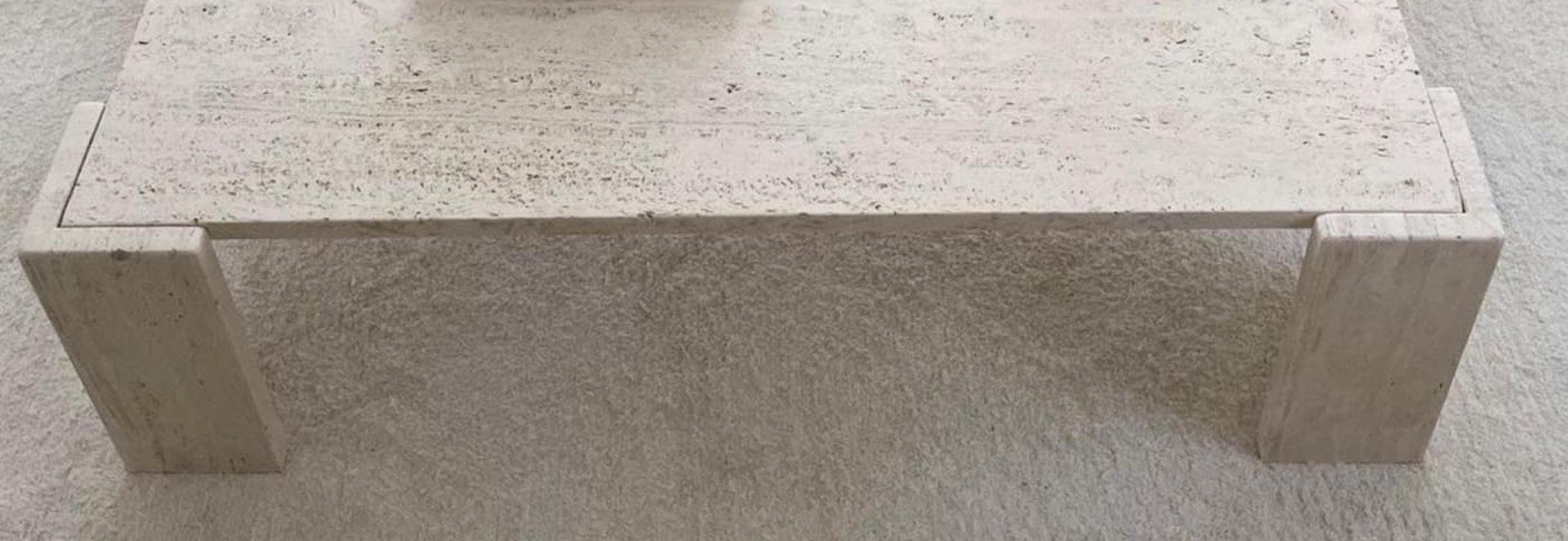 Its sleek rectangular form, combined with clean architectural lines, offers a perfect balance between minimalist design and sculptural elegance. Solid and durable, this travertine table is built to last for generations, while serving as a statement centerpiece for any interior.