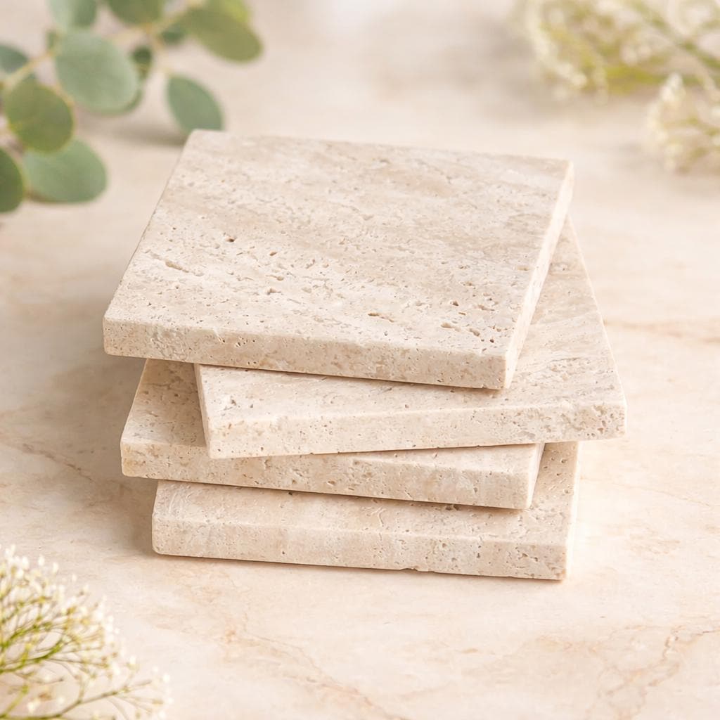 Durable, heat-resistant, and naturally beautiful—these travertine coasters bring effortless luxury to everyday living.
