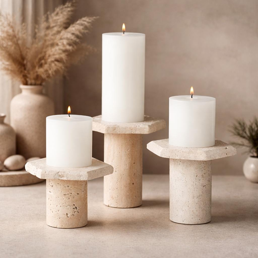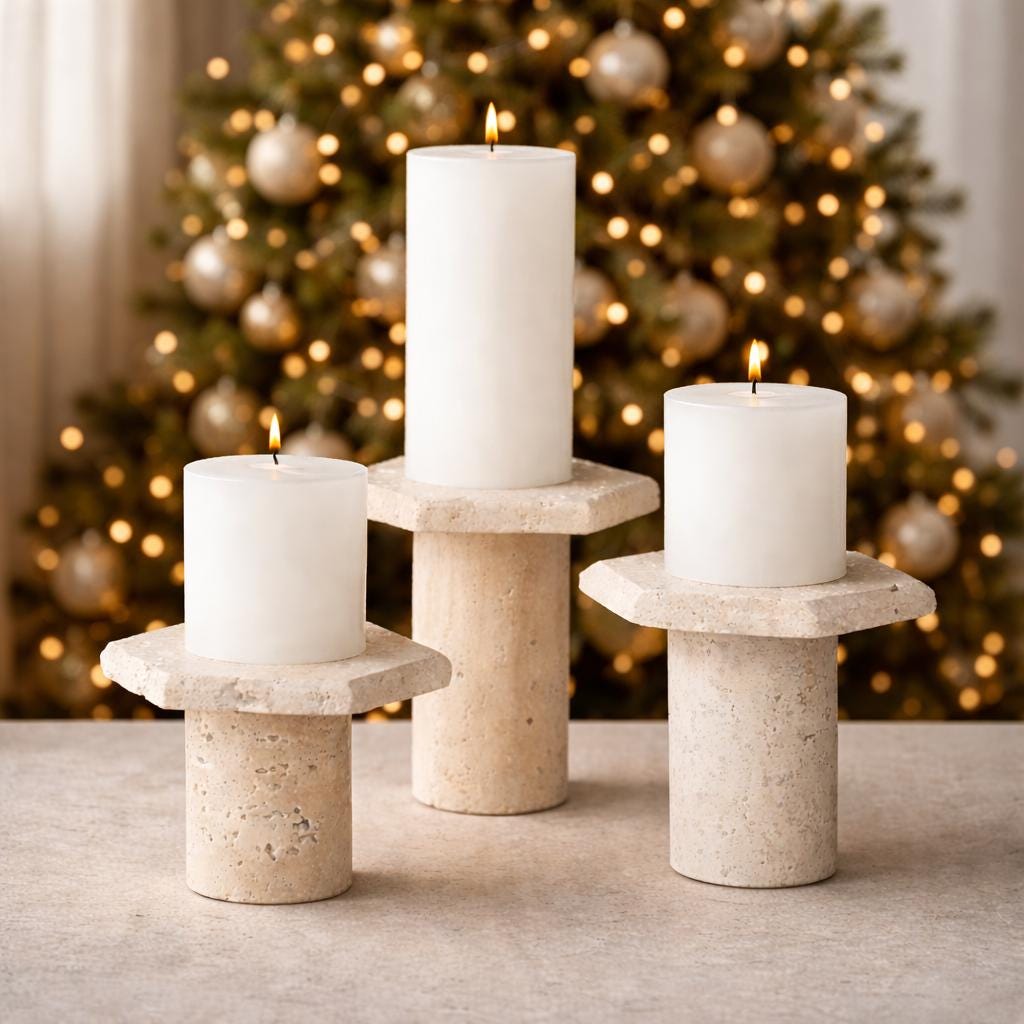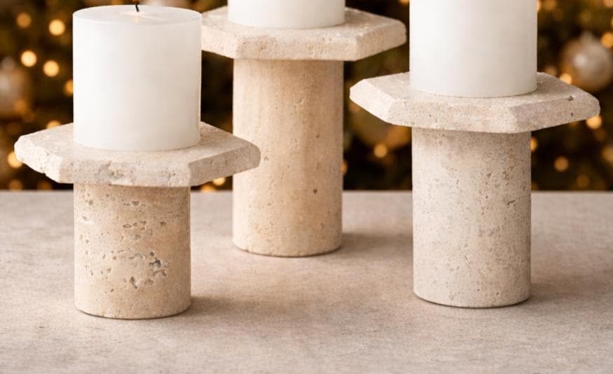 Travertine Candle Holder Set | Minimal Stone Decor | Christmas & Holiday Home Styling