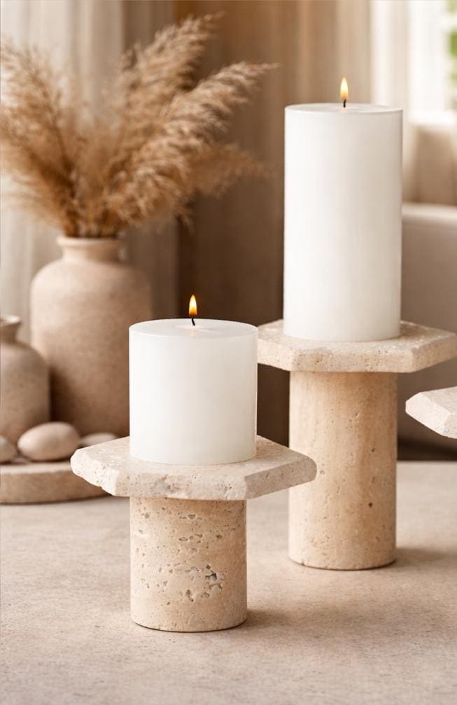 Bring timeless elegance and warm festive charm into your home with this handcrafted travertine candle holder set. Made from natural stone, each holder showcases unique textures and soft beige tones that beautifully complement modern, minimalist, and holiday interiors.
