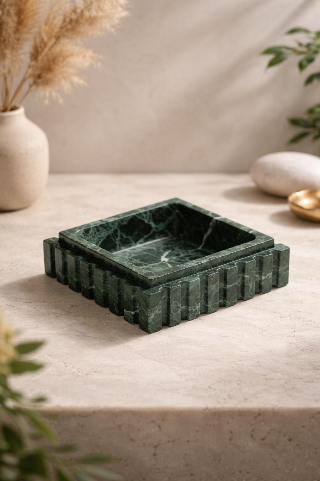 Luxury Green Marble Square Tray | Handcrafted Stone Catchall | Modern Vanity & Home Decor
