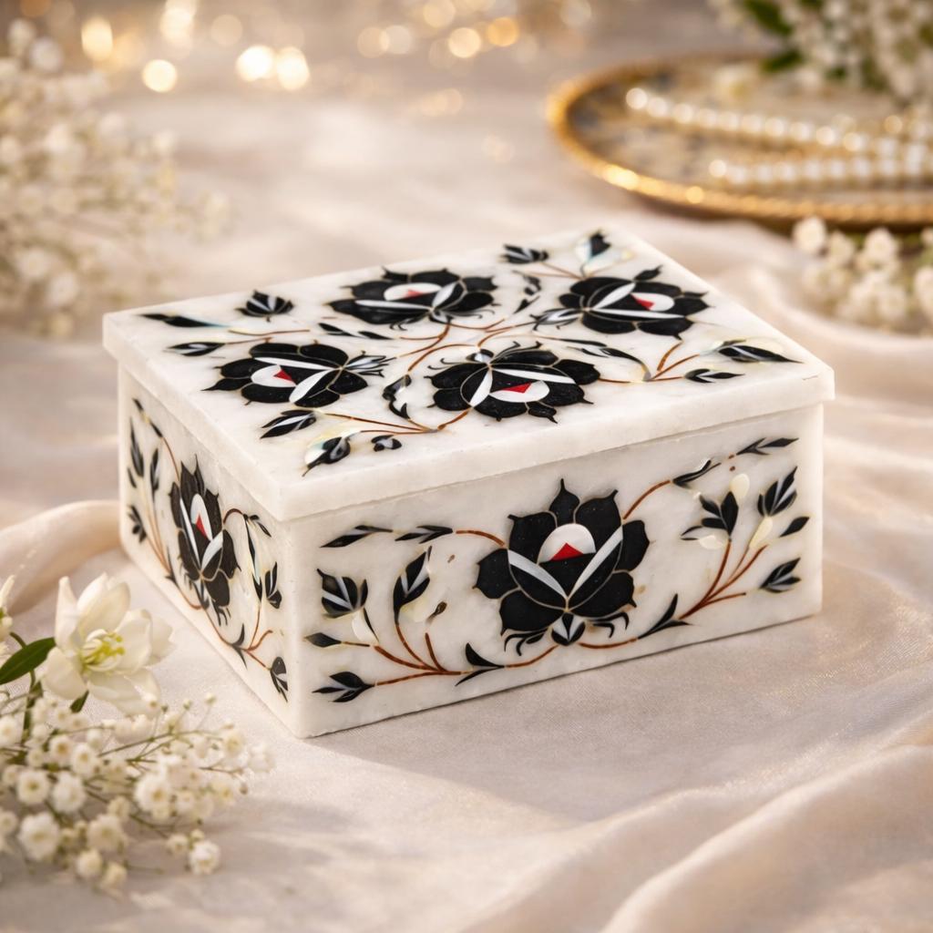 MarblingOver Artisanal Marble Jewelry Box | Taj Mahal Inspired Inlay Art