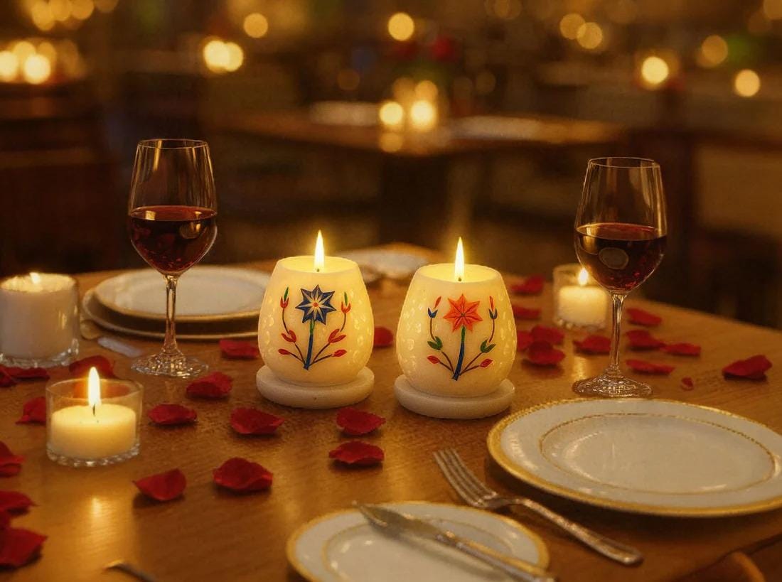 Bring the regal charm of ancient Indian craftsmanship into your home with our Handcrafted Marble Inlay Candle Holder Set. These stunning pieces are inspired by the legendary Pietra Dura art found in the Taj Mahal, featuring delicate floral patterns meticulously inlaid with vibrant semi-precious stones.