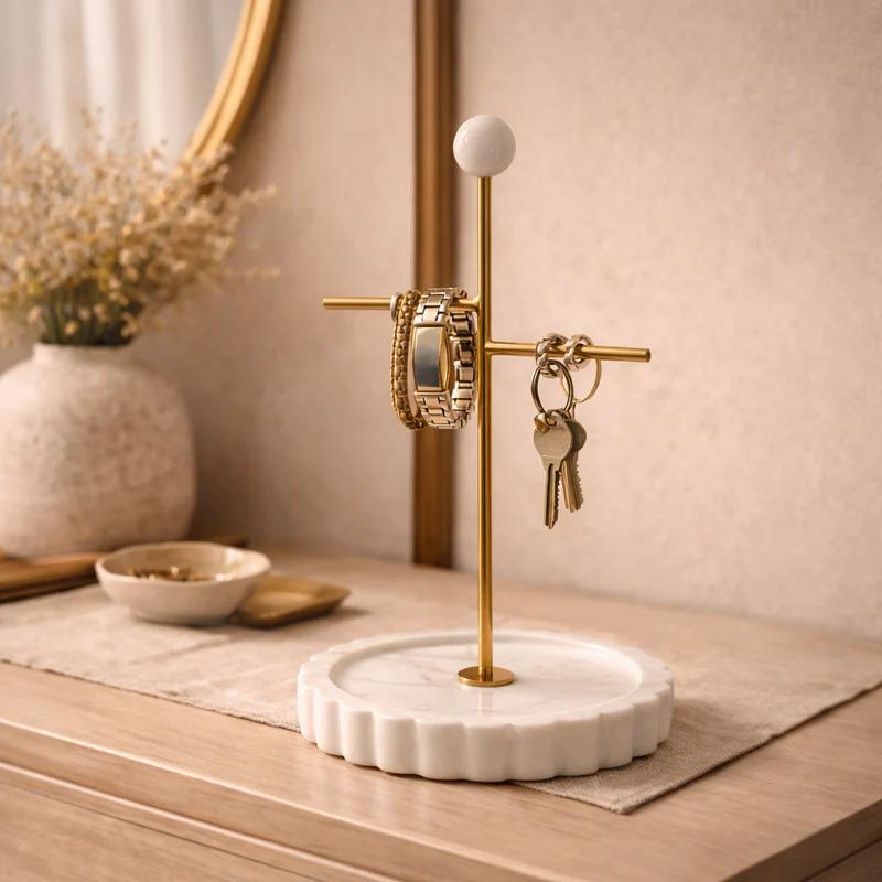 Perfect as a ring holder, watch stand, bracelet organizer, or key holder, it keeps your essentials neatly displayed while adding a luxury touch to your vanity, bedside table, or entryway console. The heavy marble base provides excellent stability, while the minimalist design complements modern, farmhouse, and classic décor styles.