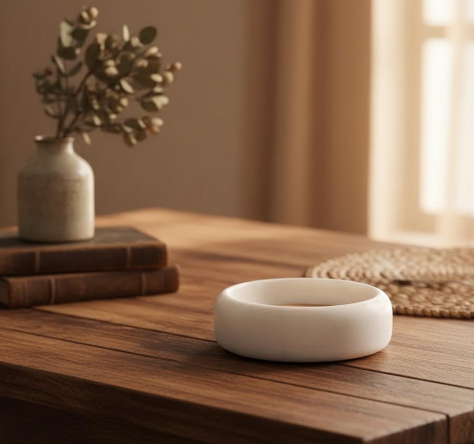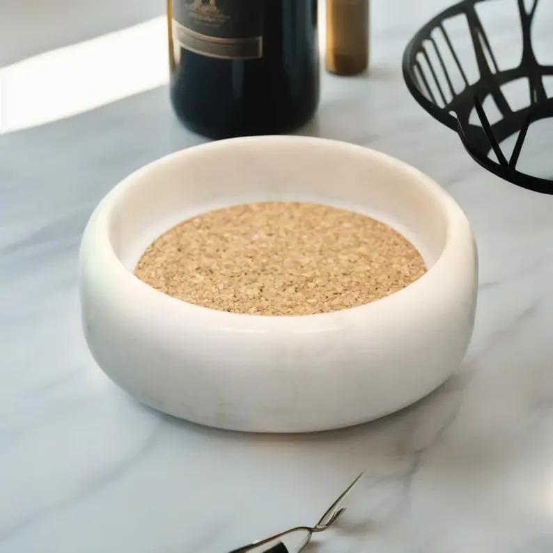 Handcrafted White Marble Bowl with Cork Base | Minimal Stone Catchall Bowl