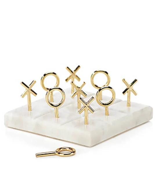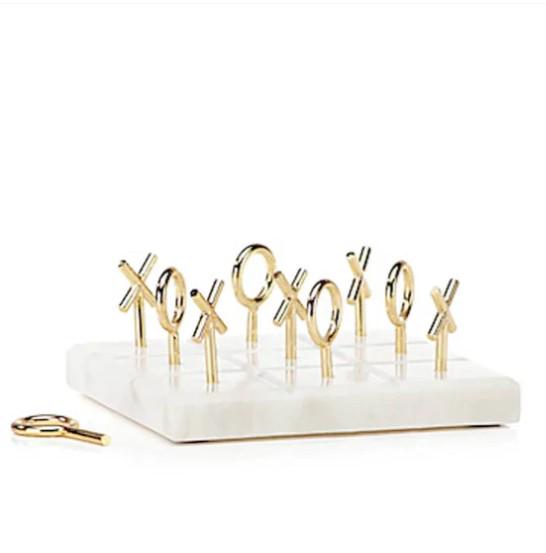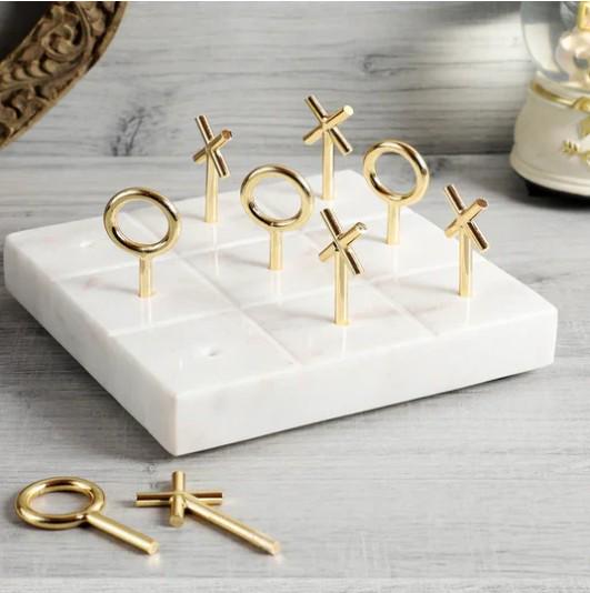 White Marble Tic Tac Toe with Brass Pieces | Luxury Marble Board Game Decor