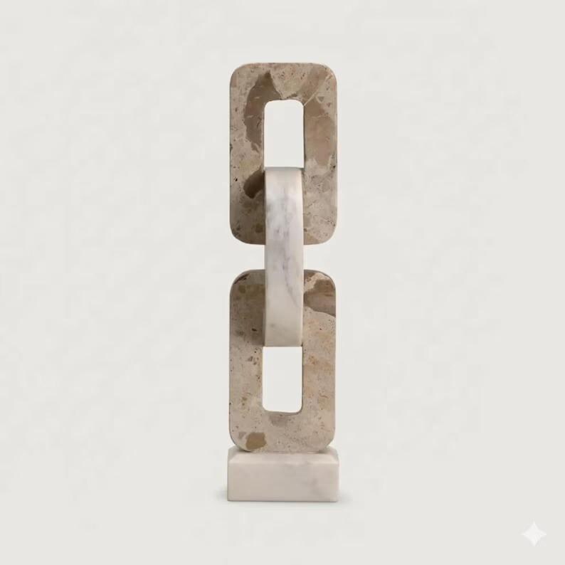 Due to the natural variations in marble, each chain link sculpture features unique color patterns and textures—no two pieces are exactly alike.