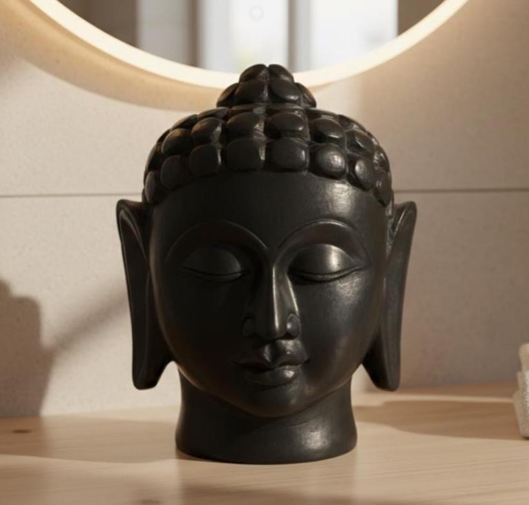 Bring a sense of profound tranquility to your surroundings with this beautifully crafted Black Buddha Head Sculpture. Designed with a smooth, matte finish and clean lines, this piece bridges the gap between ancient spiritual symbolism and modern minimalist interior design.