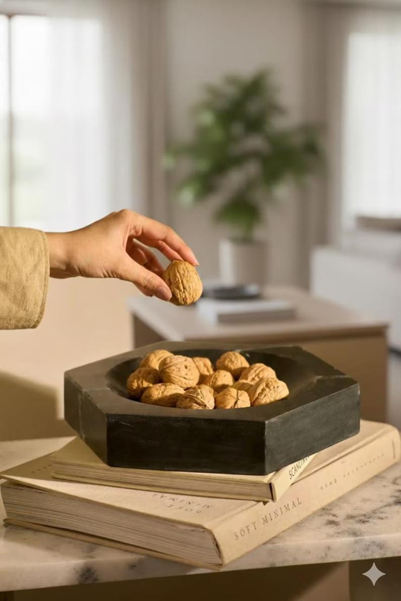 Elevate your home décor with this handcrafted black marble octagon bowl, a perfect blend of natural stone beauty and modern design. Carefully carved from premium marble, this elegant bowl features a bold geometric shape with a smooth, polished finish that adds sophistication to any space.