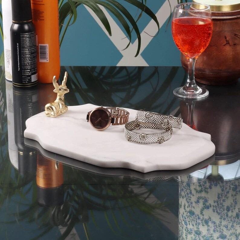This decorative marble platter works beautifully as a centerpiece on your dining table, coffee table, or kitchen counter. Its smooth polished surface and unique veining make every piece one-of-a-kind, enhancing your home décor with sophisticated charm that pairs seamlessly with modern, minimalist, and classic interiors.