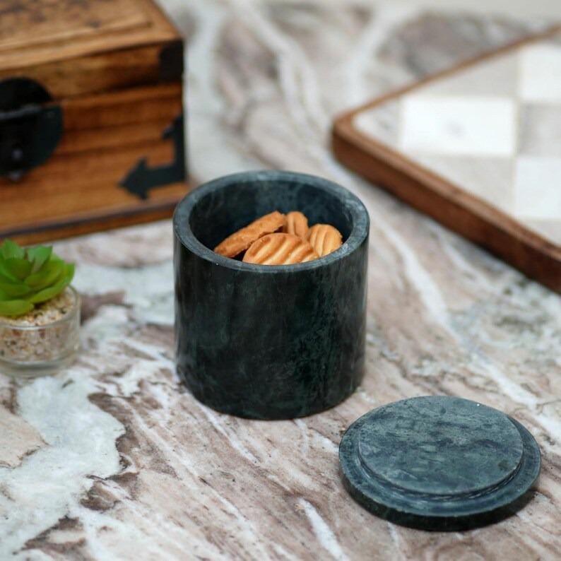 Minimalist green Marble Jar with Lid | Stone Kitchen Storage Container