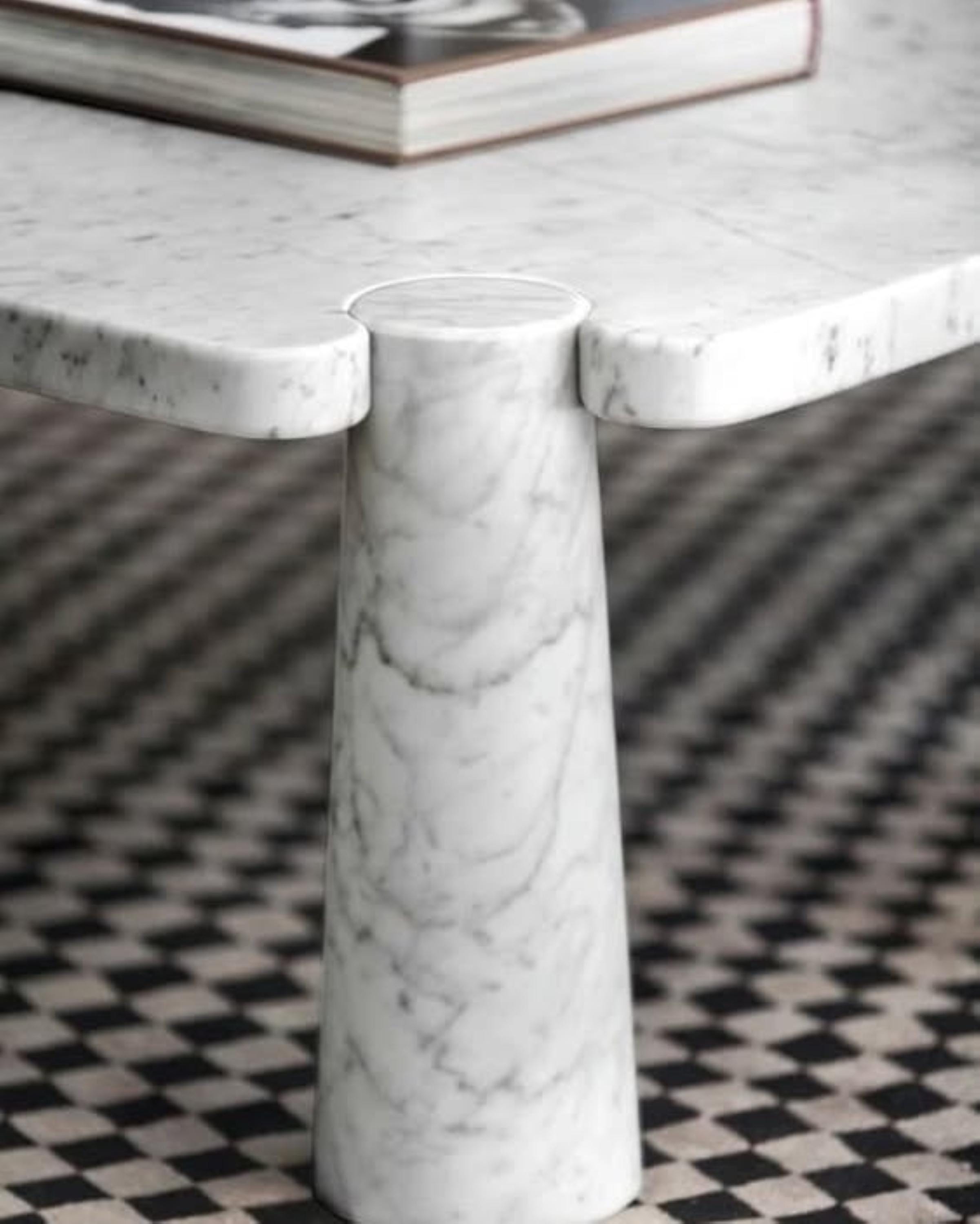Celebrate the elegance of Angelo Mangiarotti’s timeless design with this sculptural coffee table handcrafted in authentic Italian Carrara marble. Known for his architectural mastery and iconic stone furniture, Mangiarotti’s influence is reflected in the pure geometry and minimalist lines of this piece.