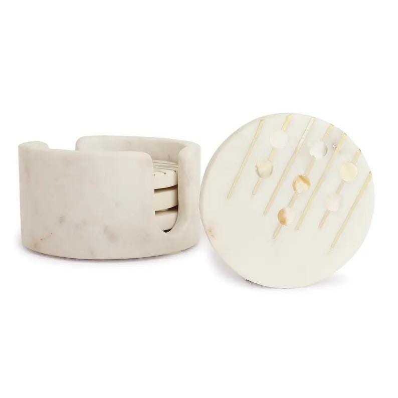 Marble Coaster Set with Holder | White Stone Drink Coasters