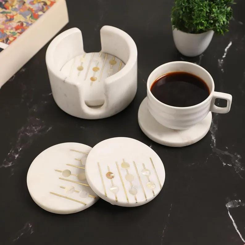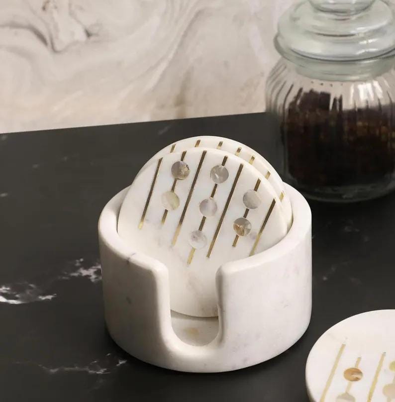 ✨ A simple, elegant essential for everyday living, this marble coaster set adds beauty and function to any space.