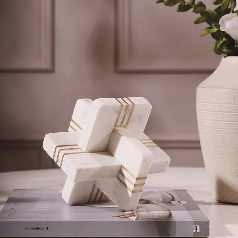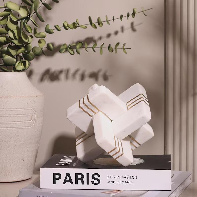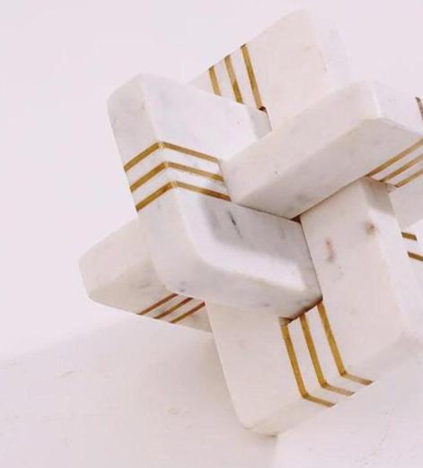 Add a refined architectural accent to your space with this white marble knot decor, beautifully detailed with brass inlay. The interwoven knot design creates a sculptural statement, while the soft white marble and warm brass lines bring a perfect balance of modern elegance and timeless craftsmanship.