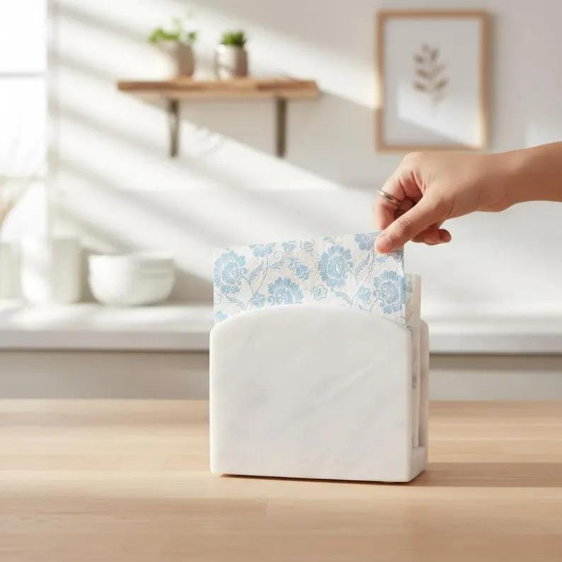 Stone Napkin Holder | Marble Look Napkin Stand | Minimal Kitchen & Dining Decor