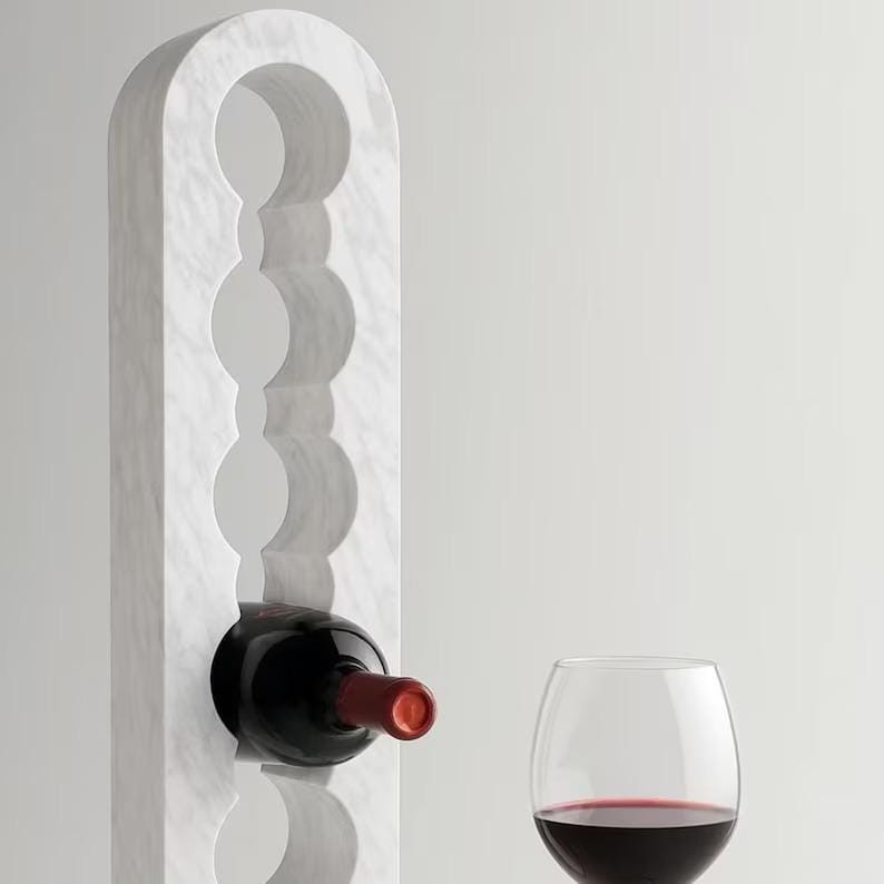 Elevate your home bar or dining space with this white marble wine bottle holder, designed as a striking sculptural accent. Crafted from natural marble, its tall, architectural form showcases smooth curves and unique veining that make each piece truly one of a kind.