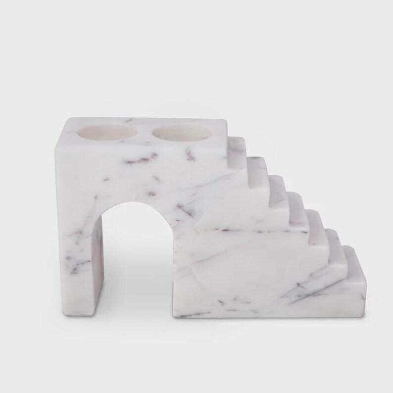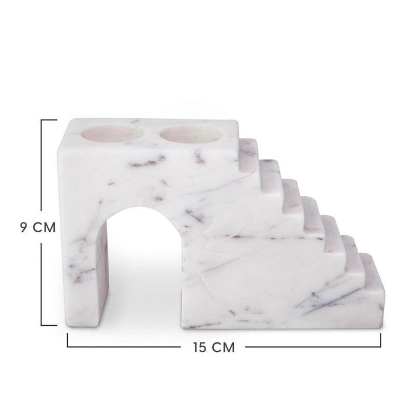 Marble Stair Decor | White Marble Candle Holder | Modern Tabletop Accent
