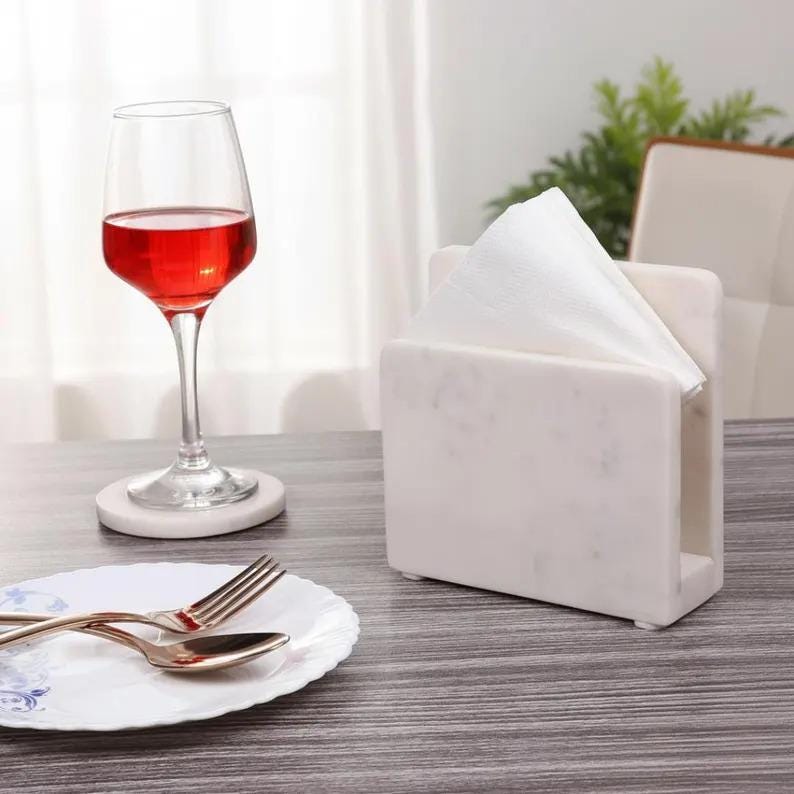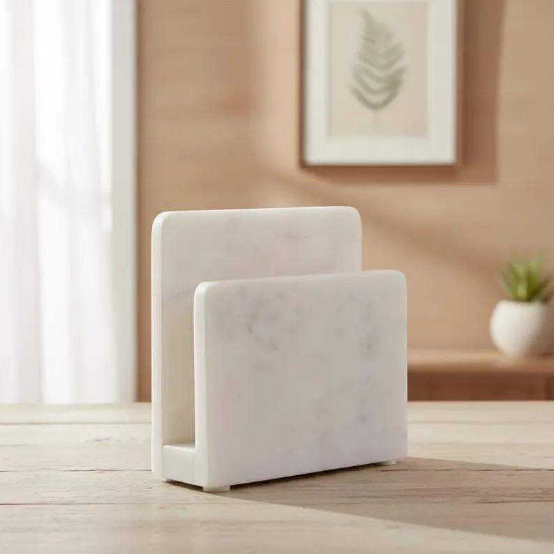 This white marble napkin holder brings a clean, modern touch to any kitchen, dining table, or coffee station. Crafted from solid marble, each piece features natural veining, making every holder beautifully one of a kind.