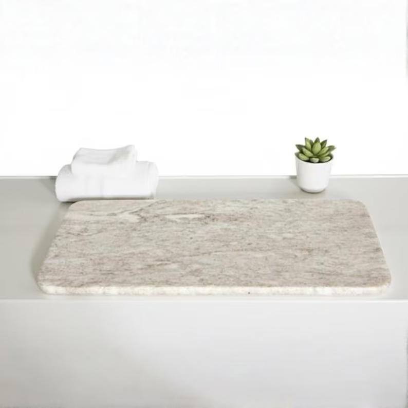 Create a spa-like experience in your own home with this elegant natural marble bathtub tray. Designed with clean lines and softly rounded edges, this solid stone tray adds timeless sophistication to any bathroom setting.