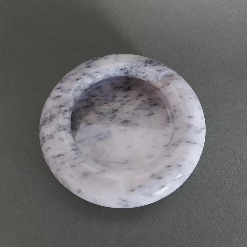 Designed with a deep center basin, this round marble ashtray offers both functionality and durability. The timeless white and gray tones blend effortlessly with modern, minimalist, and contemporary décor styles.