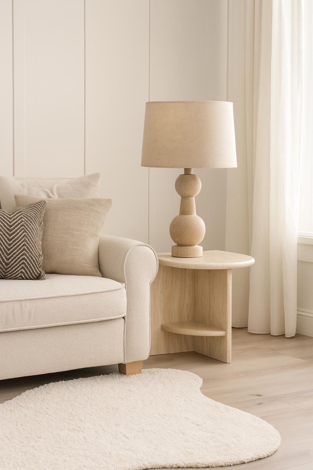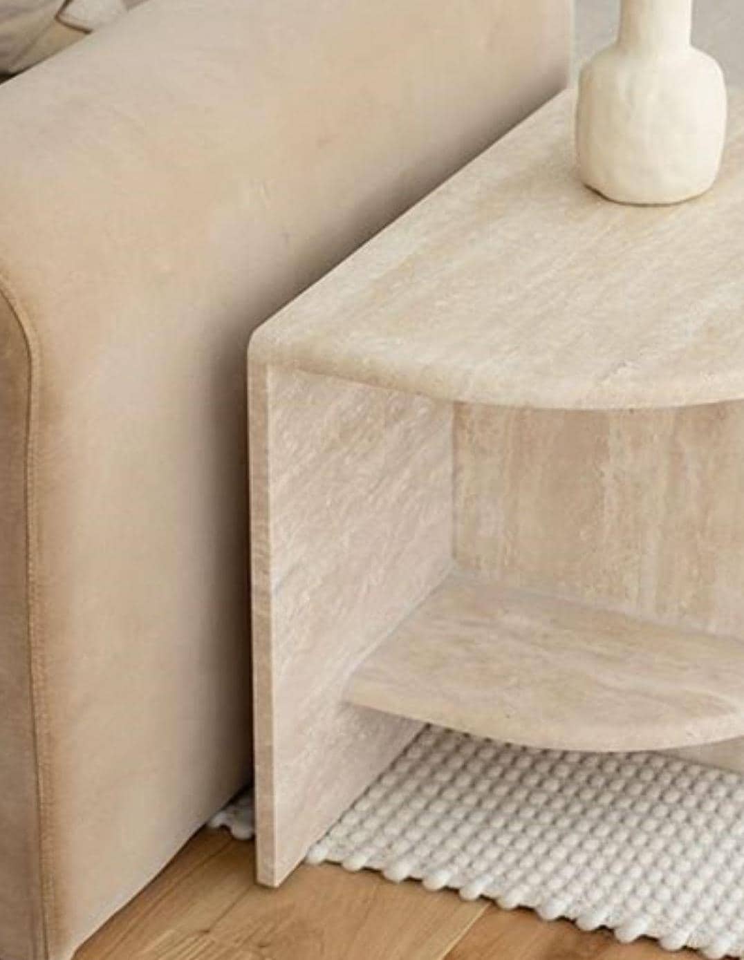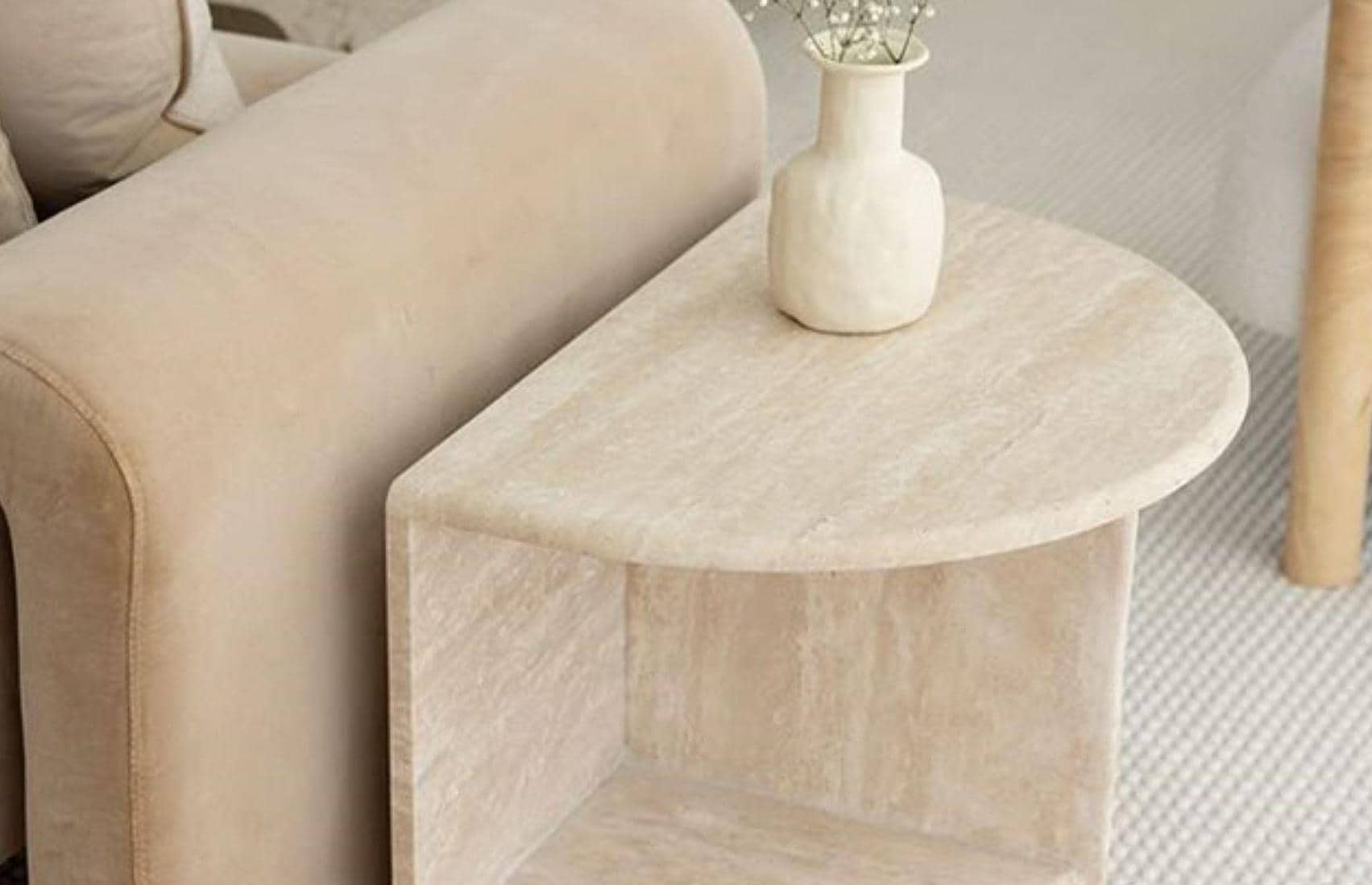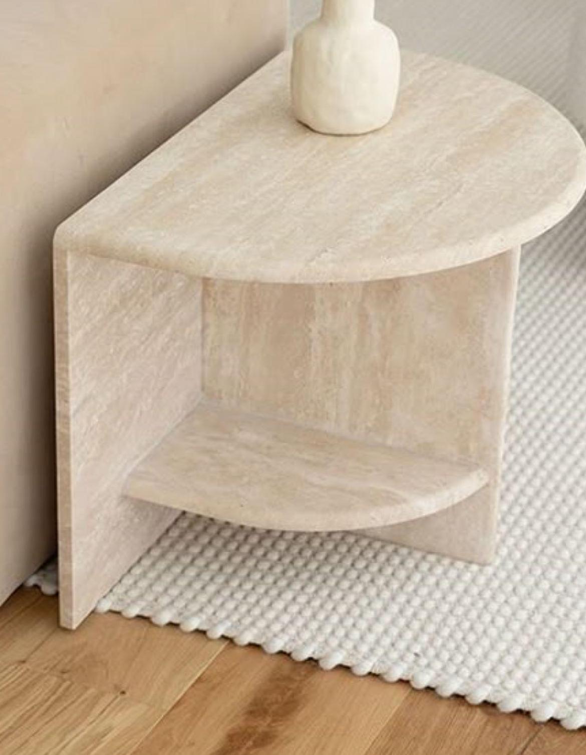 Handmade Travertine Stone Side Table: Minimalist Beige Corner Table