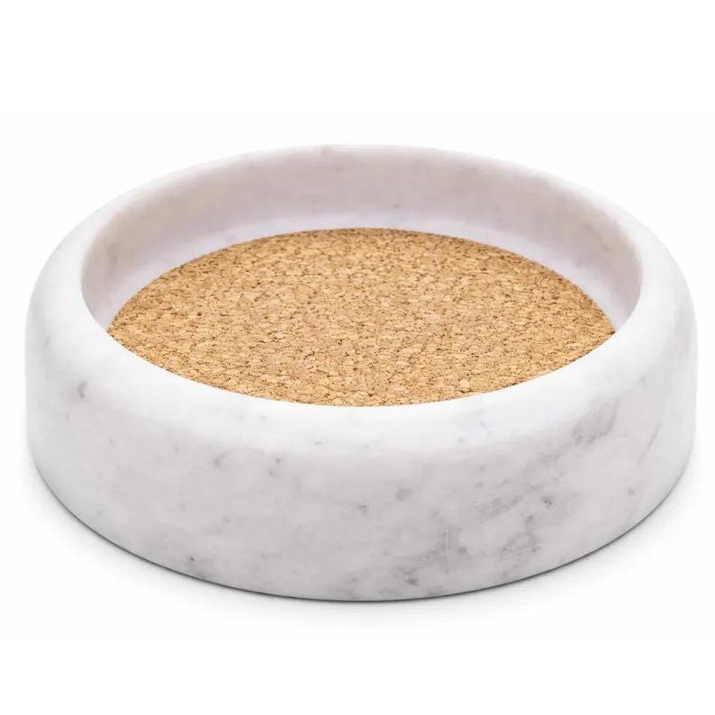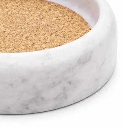 The cork insert provides a stable, non-slip base for the bottle while helping absorb condensation. Heavy and durable, this marble wine holder is both functional and decorative — perfect for entertaining or everyday display.