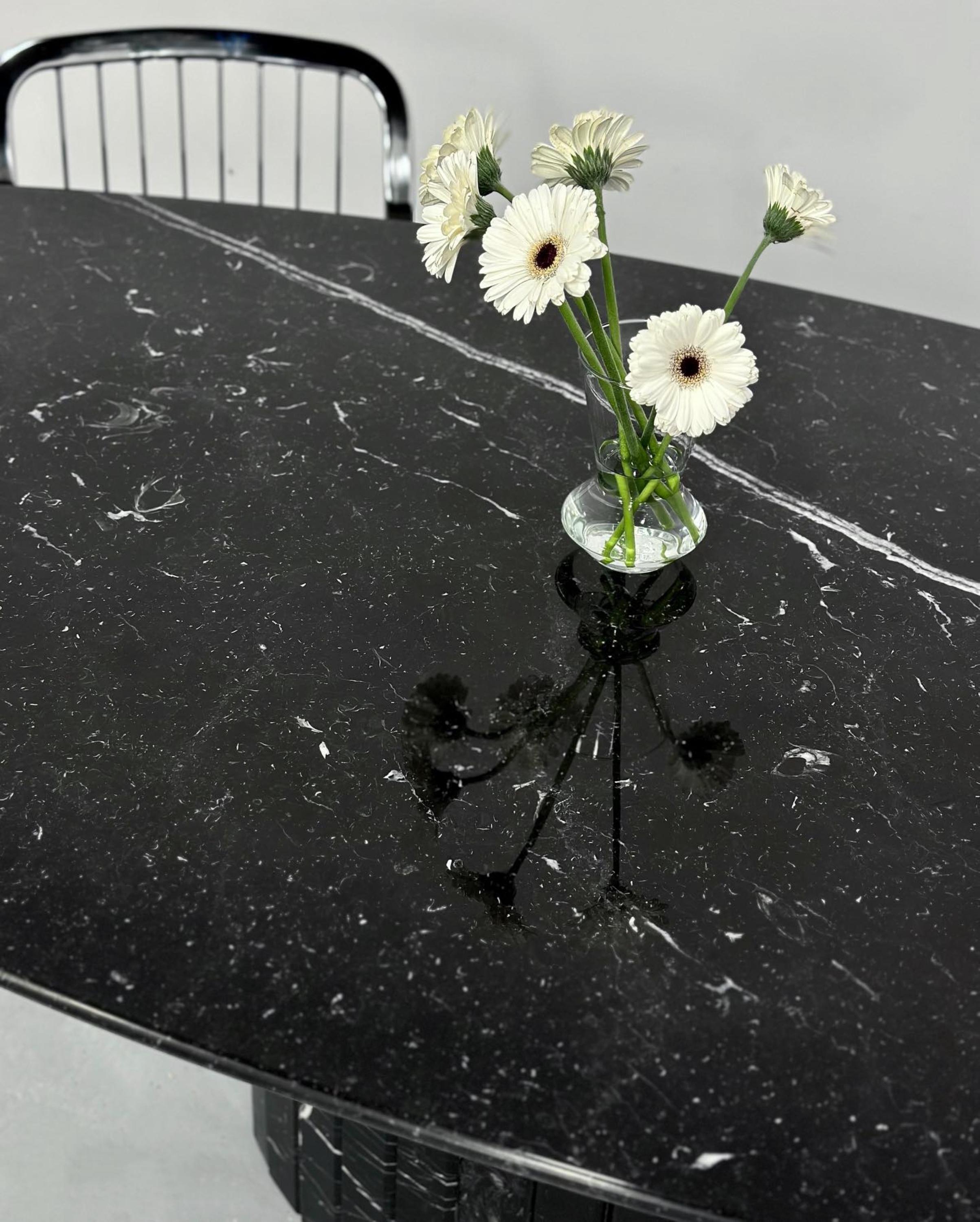 Elegant Nero Marquina Marble Oval Dining Table – Handcrafted Luxury by MarblingOver