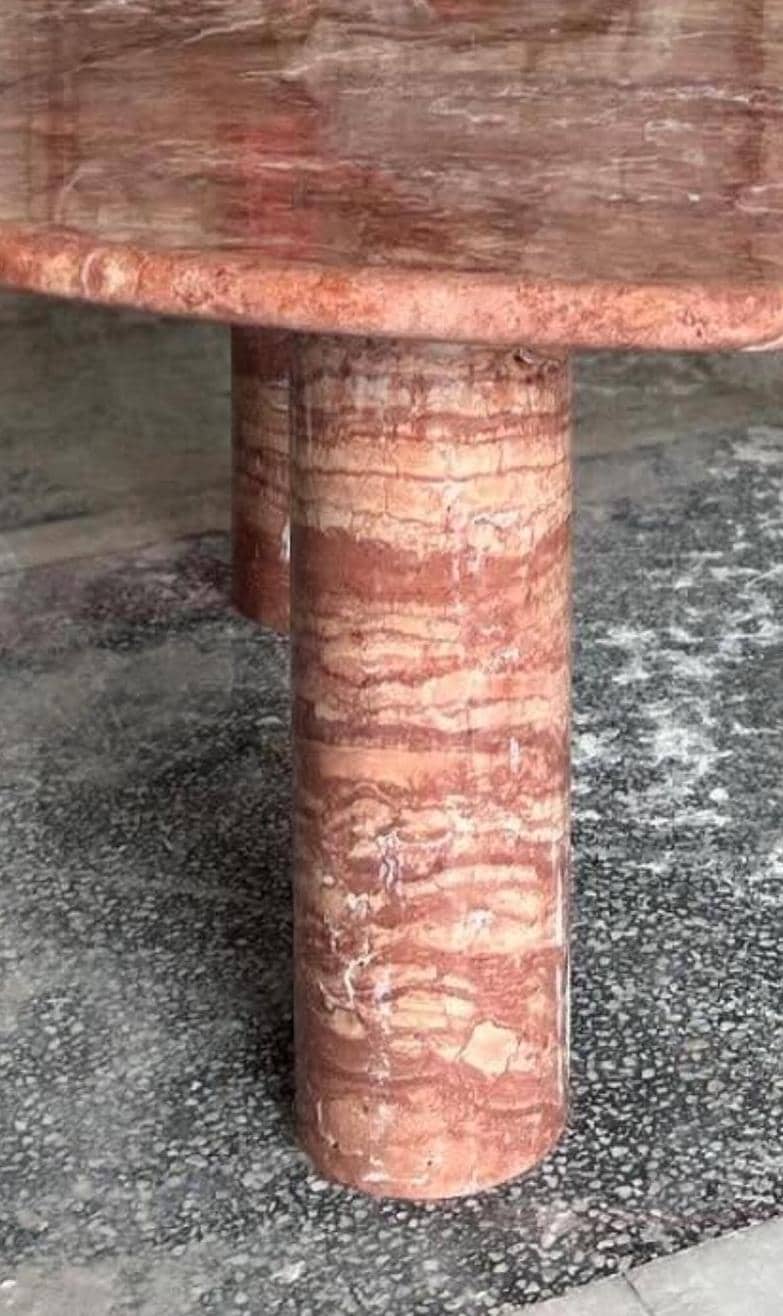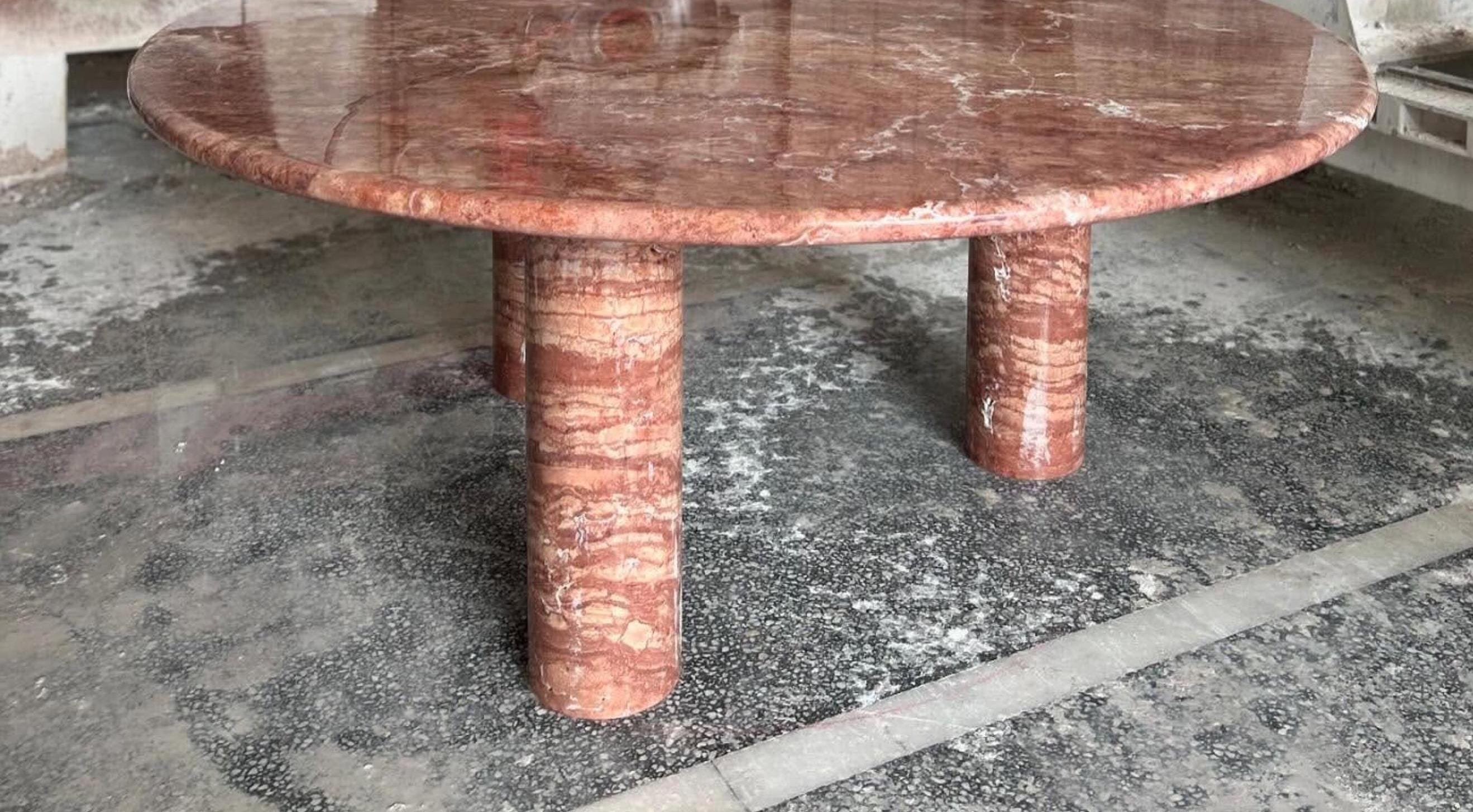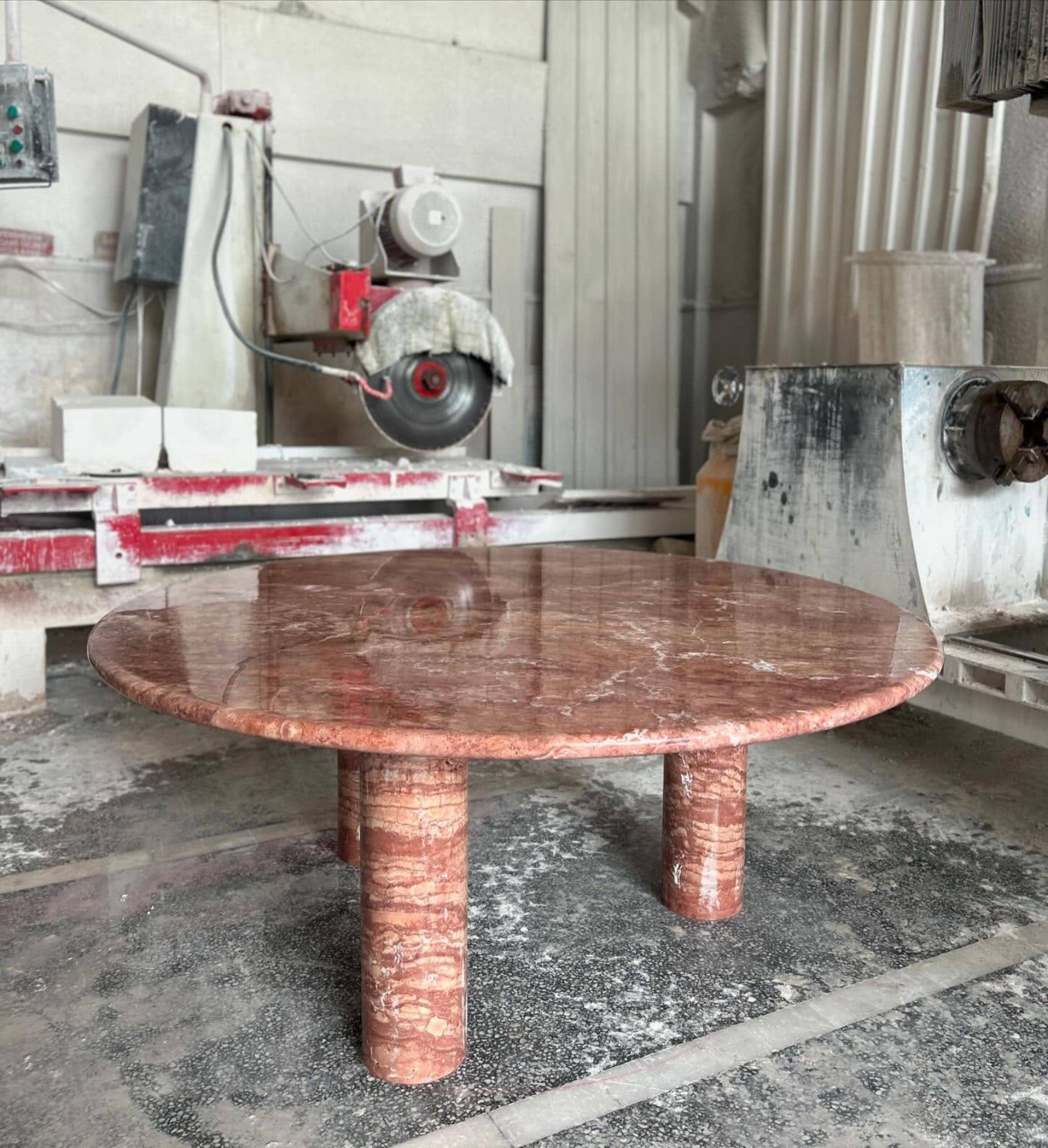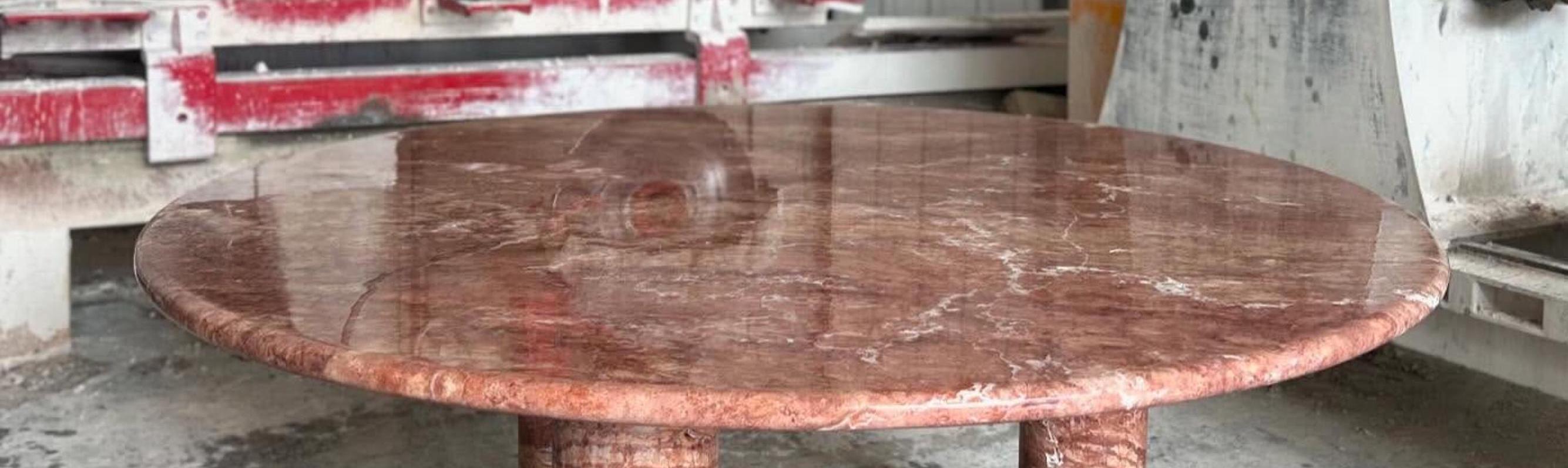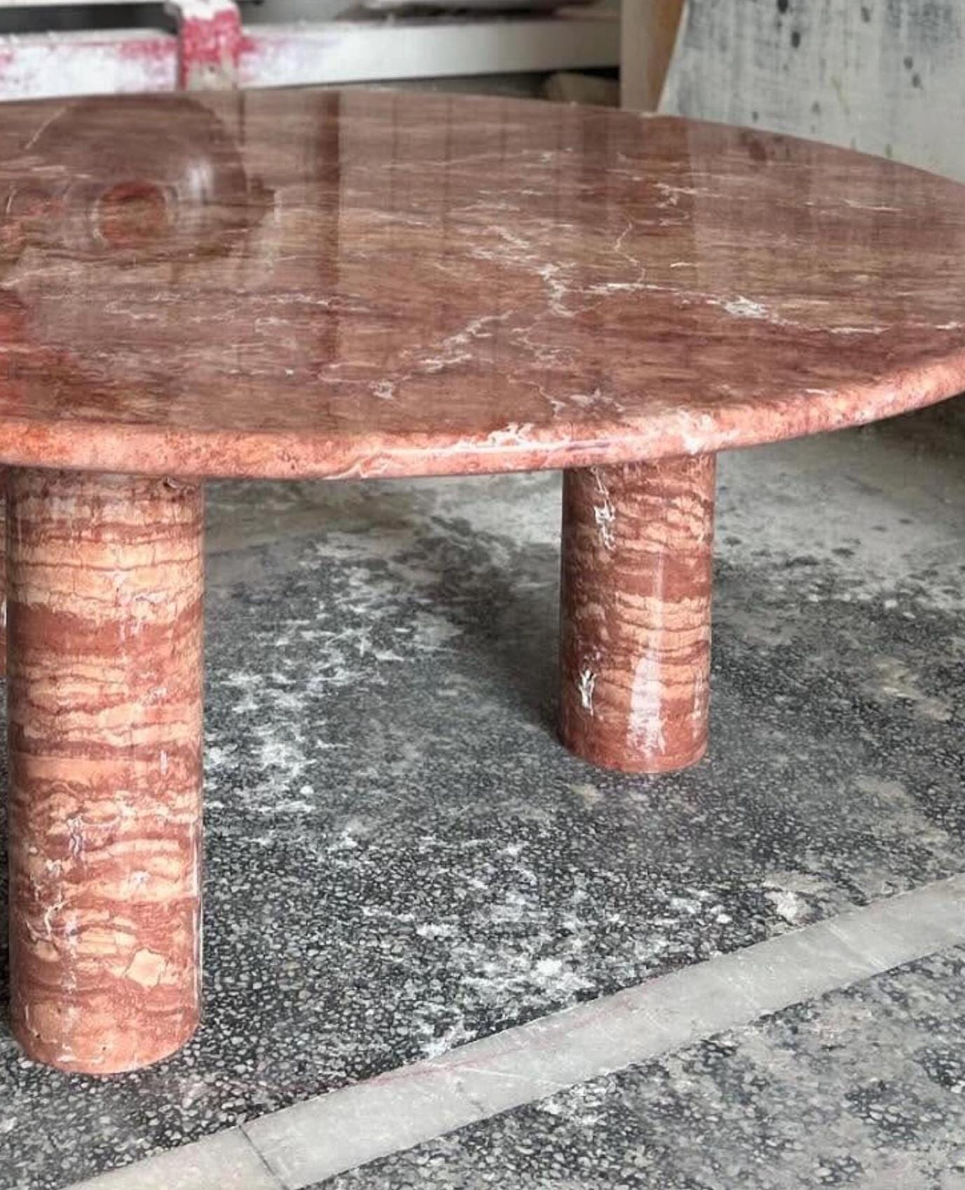 Red Travertine Round Coffee Table – Handmade Marble Centerpiece for Luxury Interiors