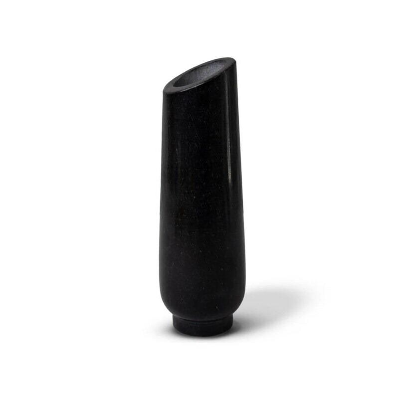 Introduce bold simplicity into your space with this striking black marble vase, designed with a distinctive angled opening for a modern architectural look. Carved from solid natural stone, this piece highlights the depth and richness of black marble while maintaining a clean, minimalist form. Its smooth, polished surface reflects light subtly, enhancing its sculptural presence.