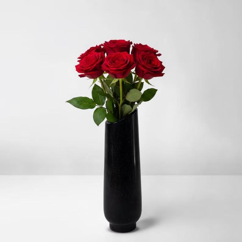 A refined décor piece that blends art and functionality, this black marble vase brings depth, contrast, and sophistication to any room.