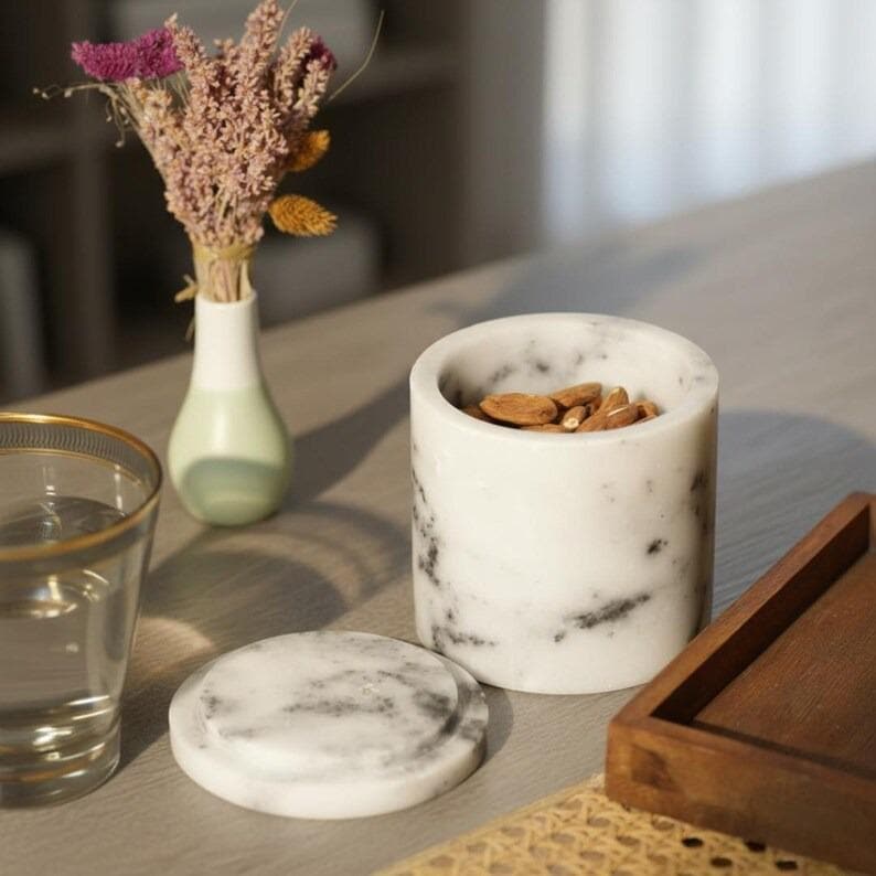 Perfect for modern, farmhouse, or minimalist kitchens, these jars are both functional and decorative. Their natural stone construction ensures durability while adding a luxurious touch to your countertop, dining table, or open shelving.