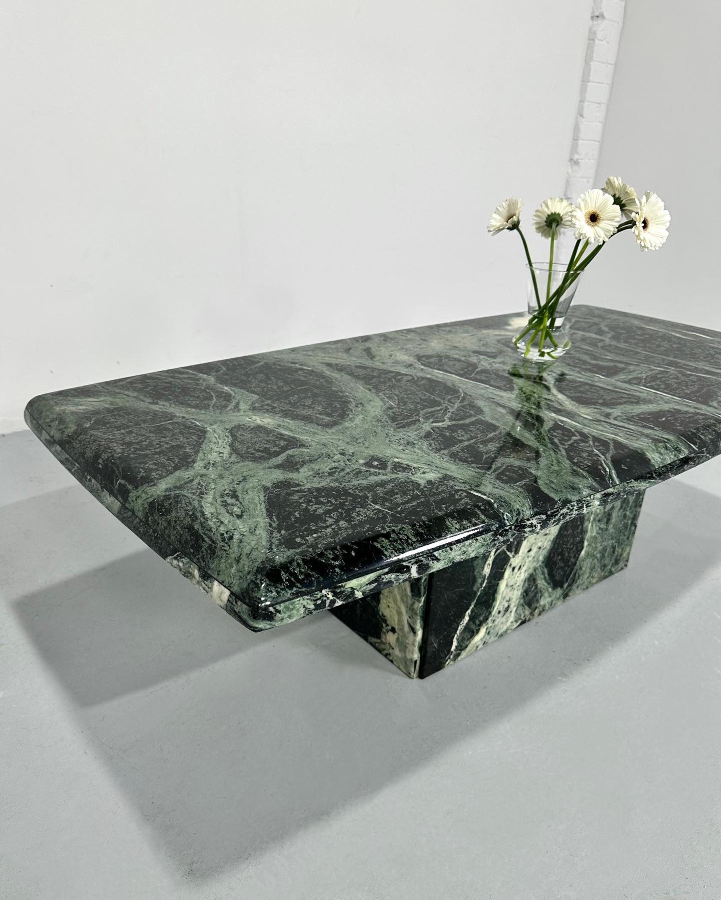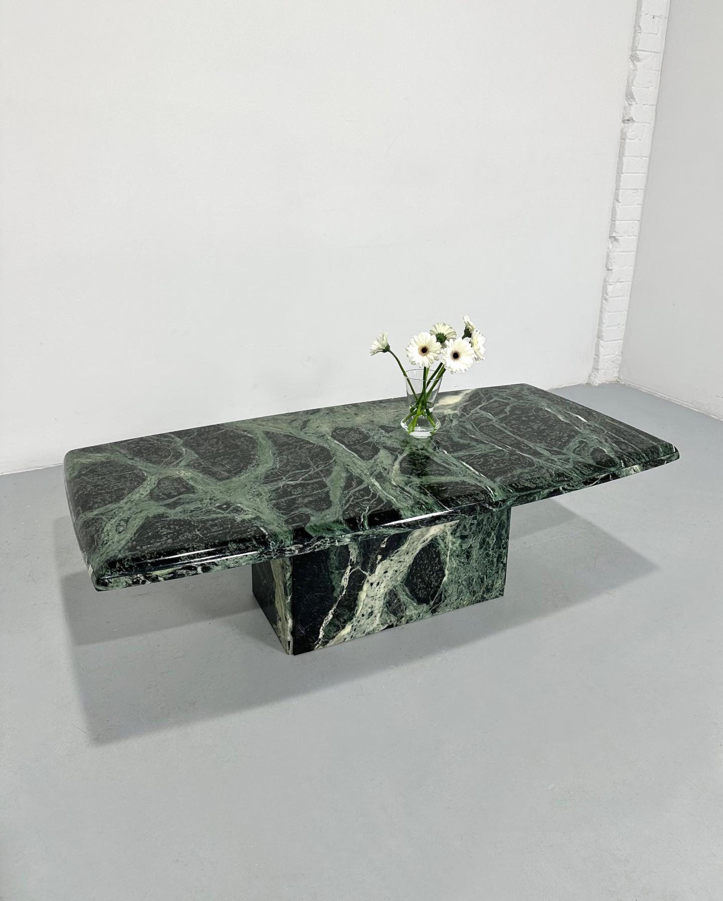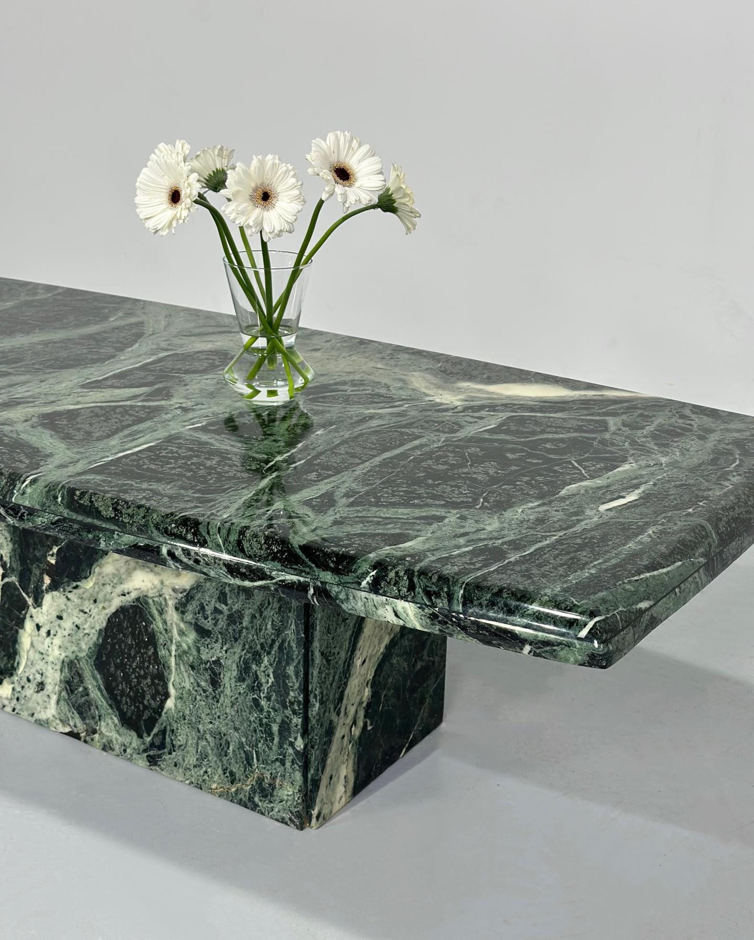 Bring home a masterpiece of craftsmanship and natural beauty with this Handmade Green Marble Coffee Table, where art, nature, and functionality come together in timeless harmony.