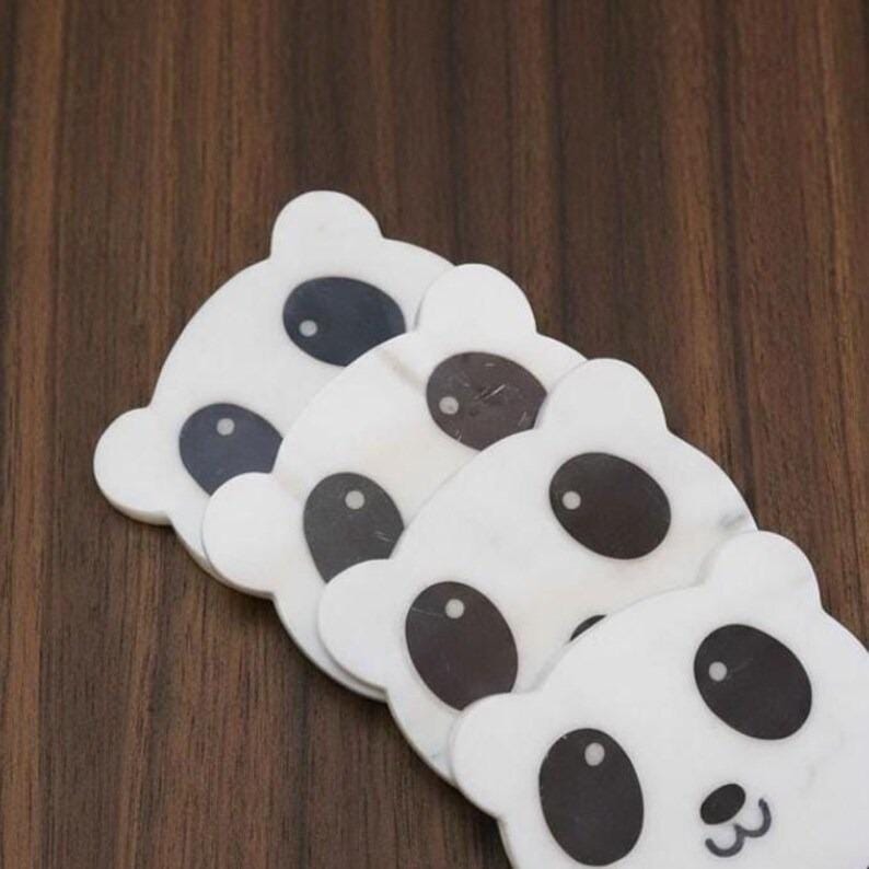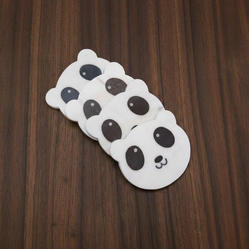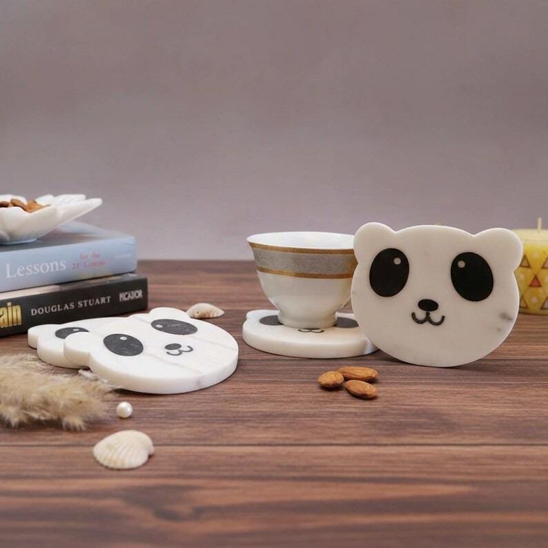 Each coaster features a charming panda design with bold black eyes and a sweet expression. Perfect for holding coffee mugs, tea cups, water glasses, or cold drinks while protecting your furniture from spills, stains, and heat marks.