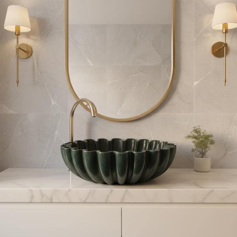 Green Lotus Bathroom Sink – Modern Sculptural Vessel Basin – Luxury Vanity Bowl