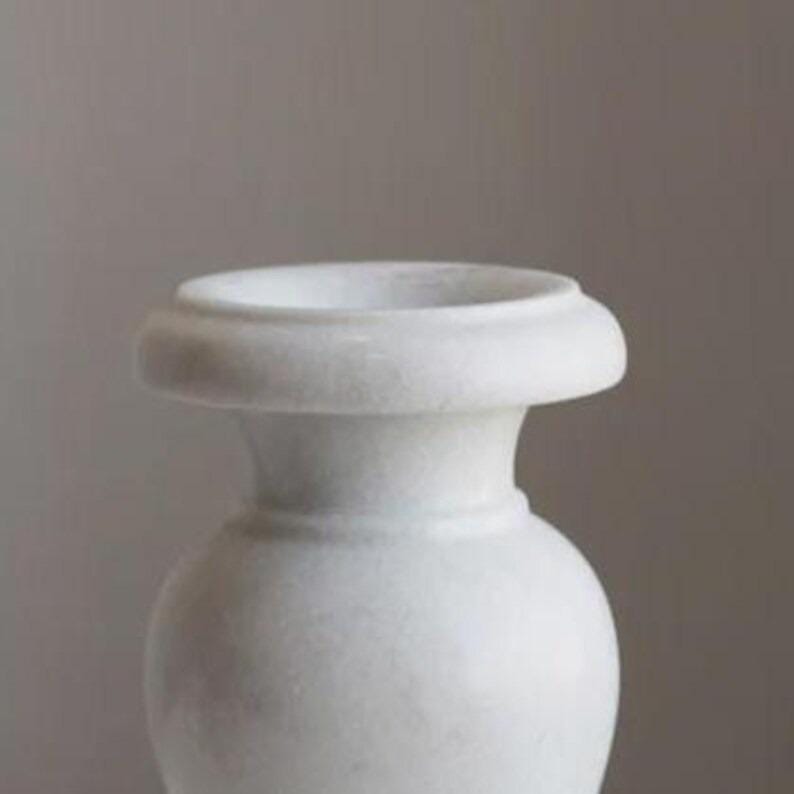 Handcrafted from solid white marble, this vase features a smooth, curved body, a pedestal base, and a softly flared rim for a balanced, sculptural silhouette. Its clean lines and natural stone texture make it perfect for minimalist, Scandinavian, contemporary, or classic home dΓ©cor.