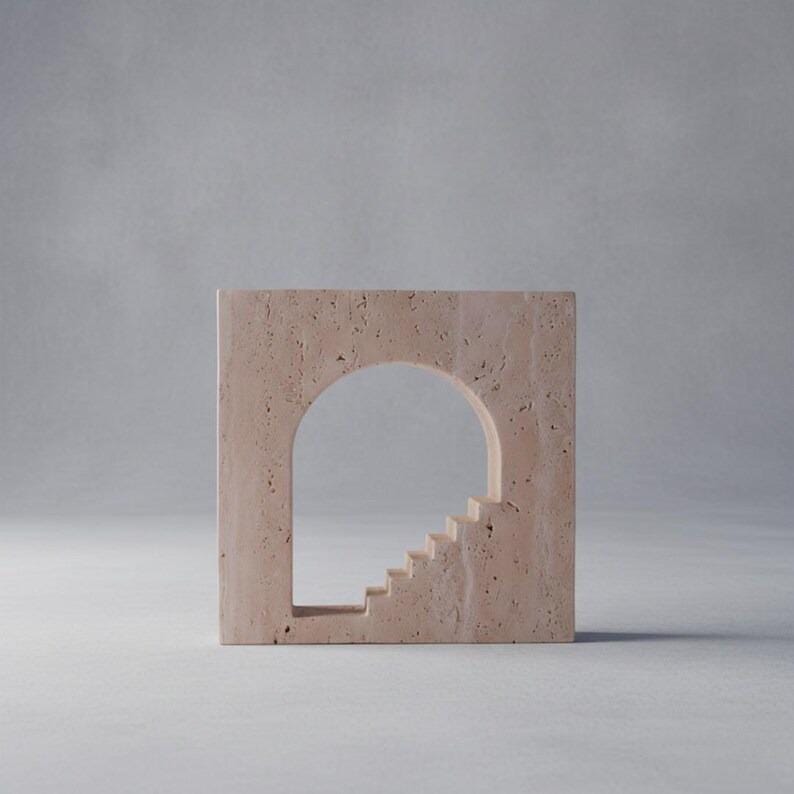 Bring timeless architectural elegance into your home with this minimalist travertine arch sculpture set. Inspired by classical arches and modern design, this sculptural duo features a grand arched doorway with carved staircase detail and a complementary double-arch piece — creating depth, balance, and visual harmony.
