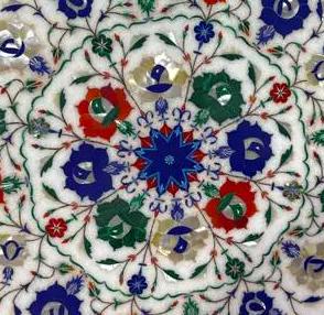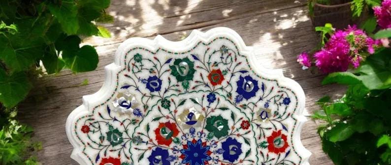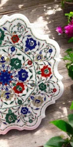Inlay work is a decorative technique where small pieces of materials like wood, metal, stone, or shells are set into the surface of an object to create intricate patterns or designs. The materials used for inlay are usually different in color or texture from the base material, making the design stand out. This art form is often seen in furniture, jewelry, flooring, and architectural elements. In marble inlay work, for example, semi-precious stones are meticulously cut and embedded into the marble surface to form beautiful patterns, often seen in tabletops and decorative panels. The process requires skilled craftsmanship to ensure the pieces fit together perfectly and are flush with the surface.