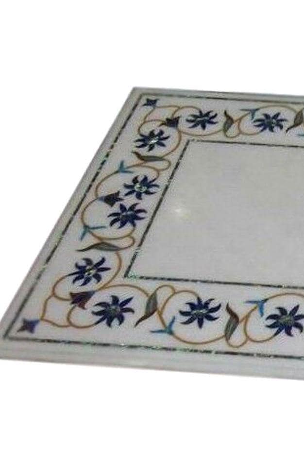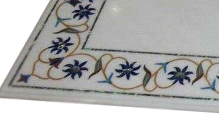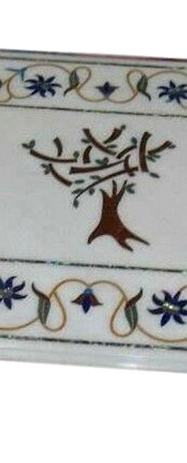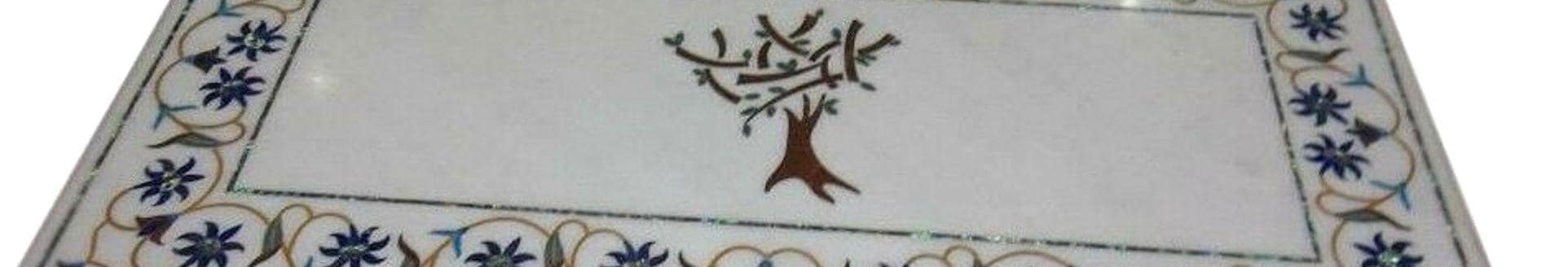 Handmade Marble Inlay Table Top with Tree Design – White Pietra Dura Stone Floral Border