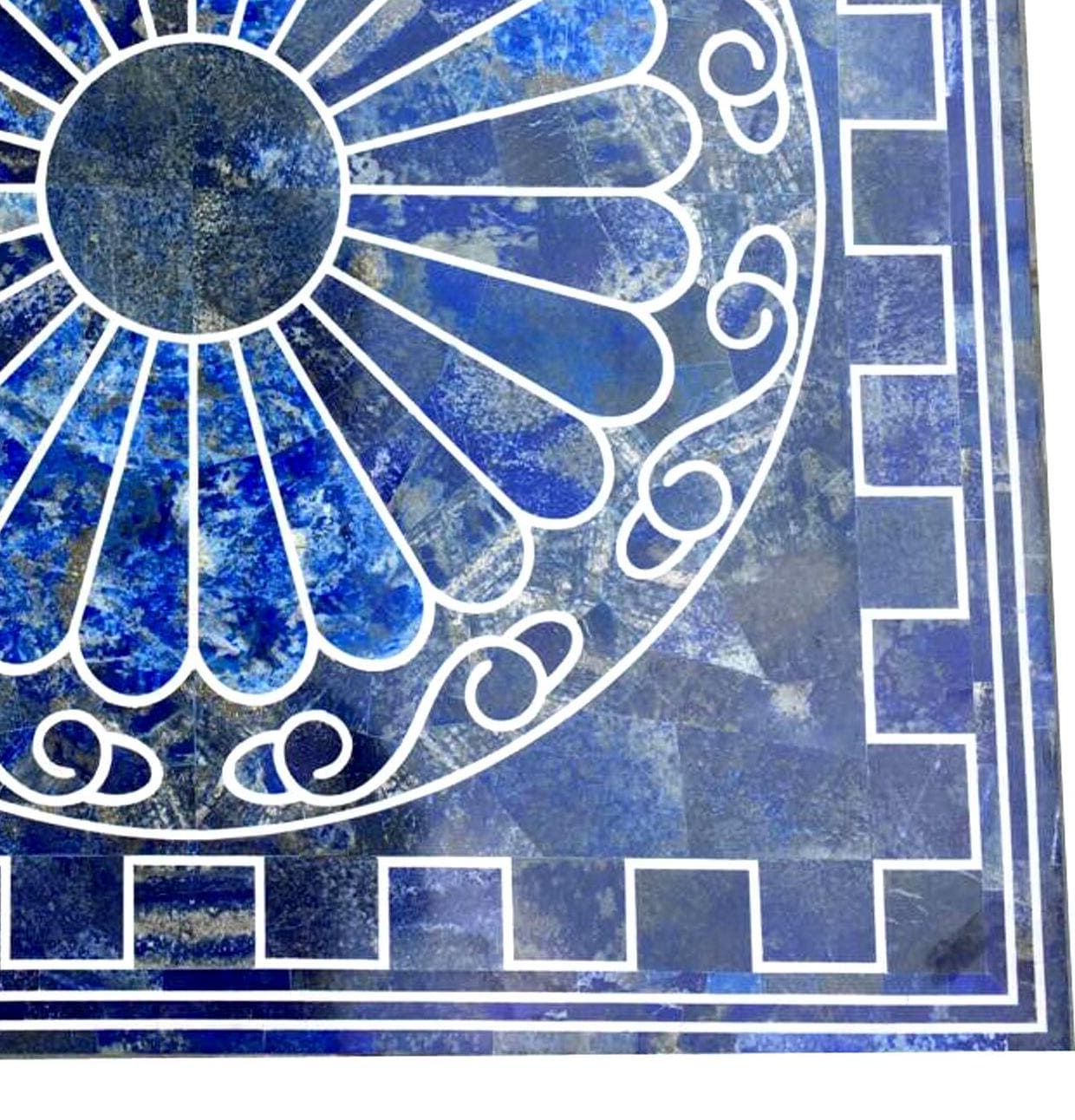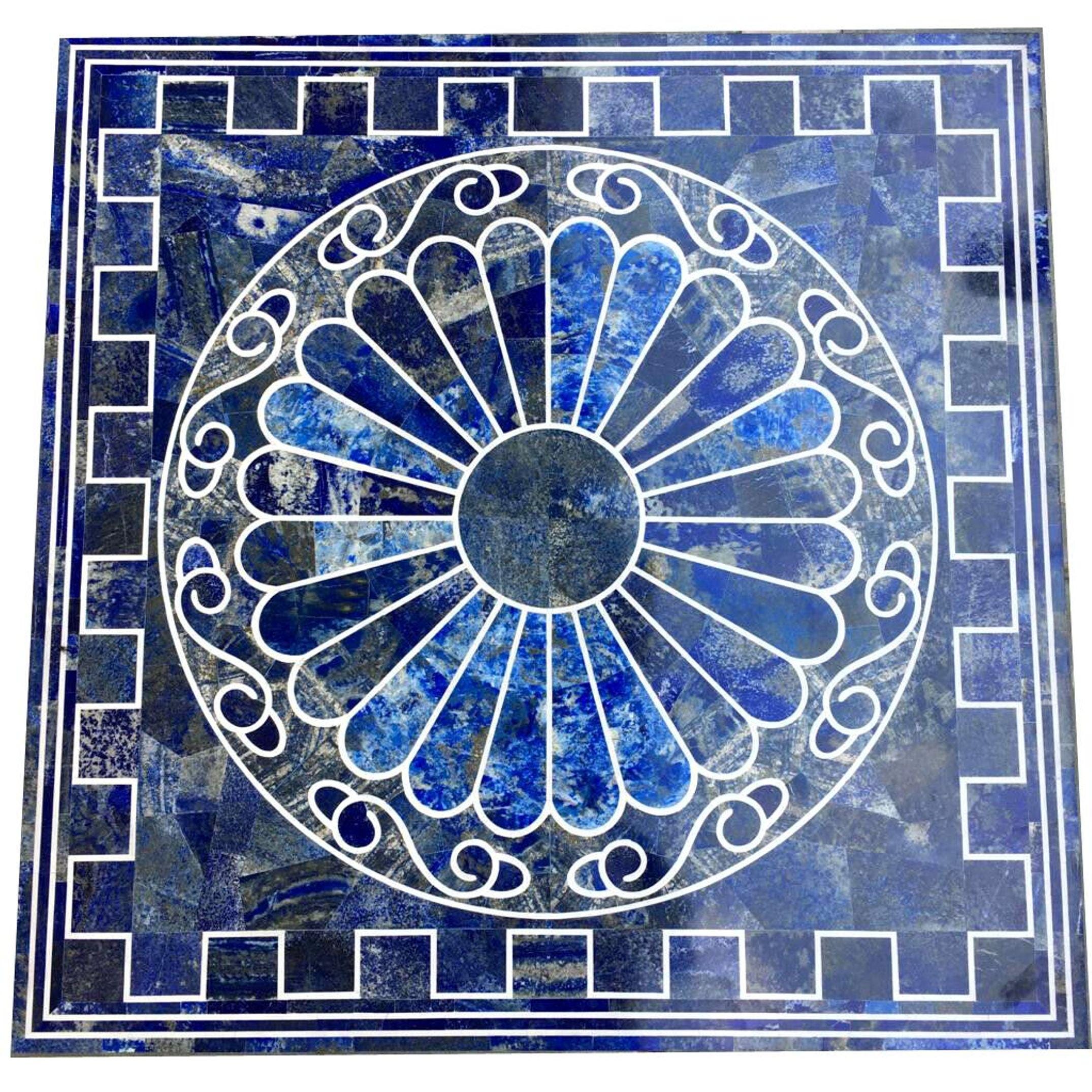 Blue Lapis Lazuli Marble Inlay Table Top – Round Medallion Pietra Dura Design – Luxury Square Coffee Table Top