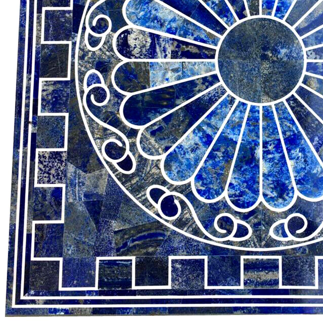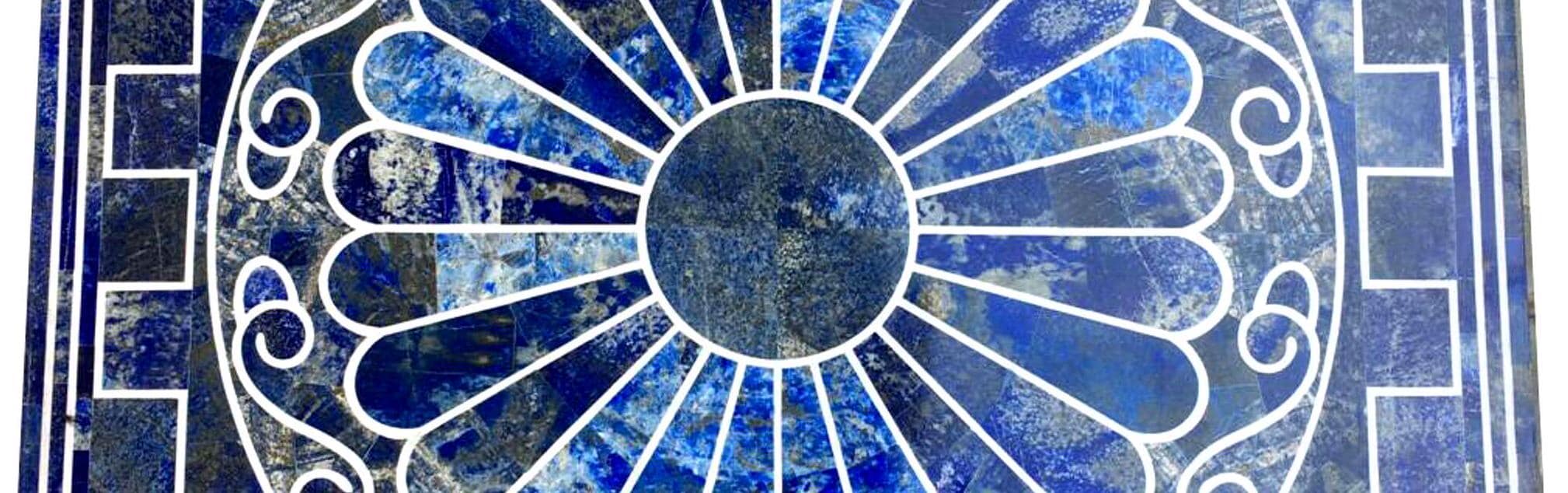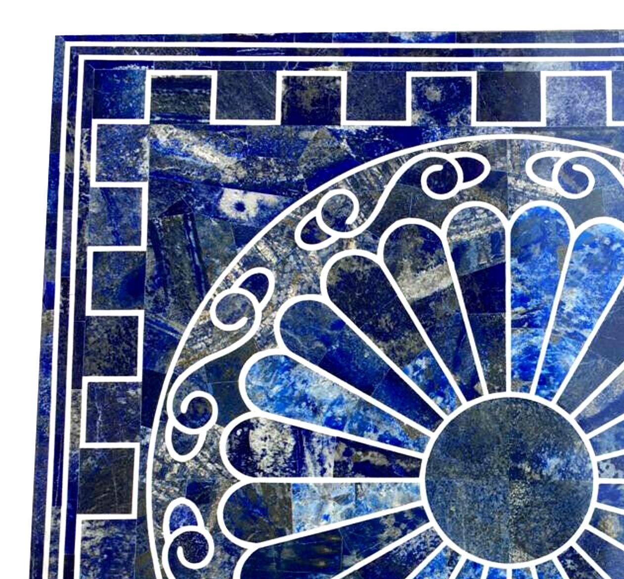 Elevate your space with this striking blue lapis lazuli marble inlay tabletop, a bold and luxurious statement piece handcrafted using traditional pietra dura techniques. The deep royal blue tones paired with crisp white inlay lines create a dramatic and timeless design.