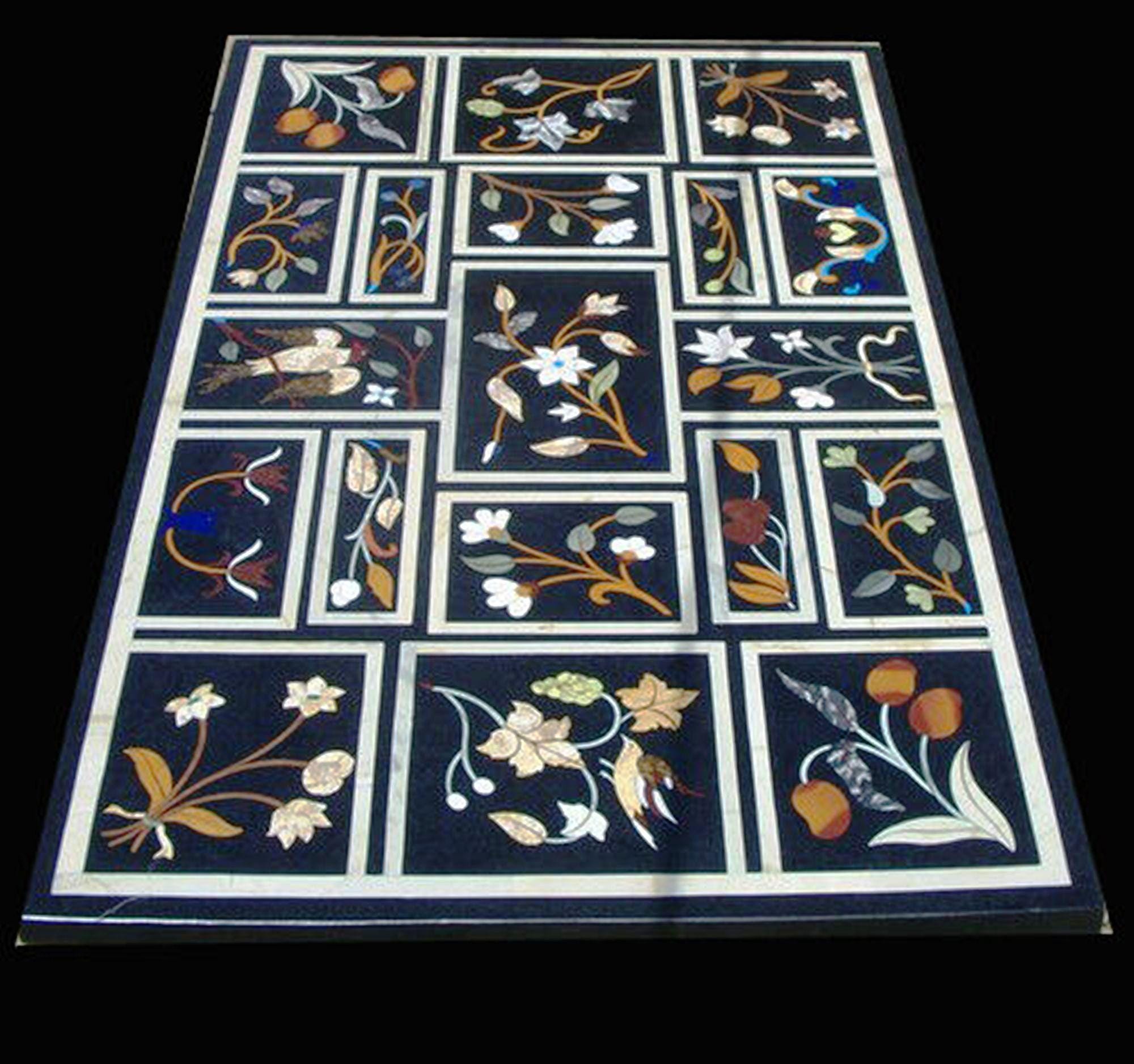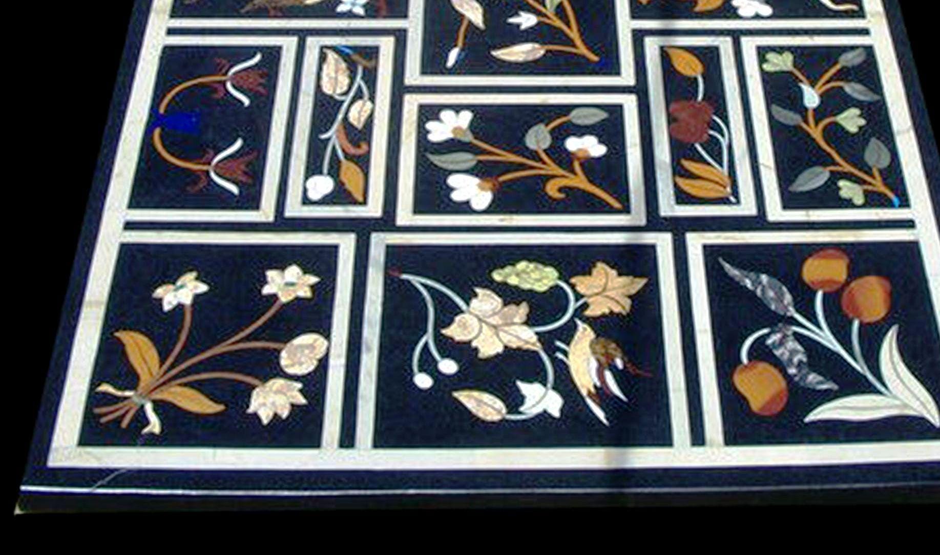 Rich Black Marble Base: The dark background enhances the vibrancy of the inlaid stones and creates dramatic contrast.