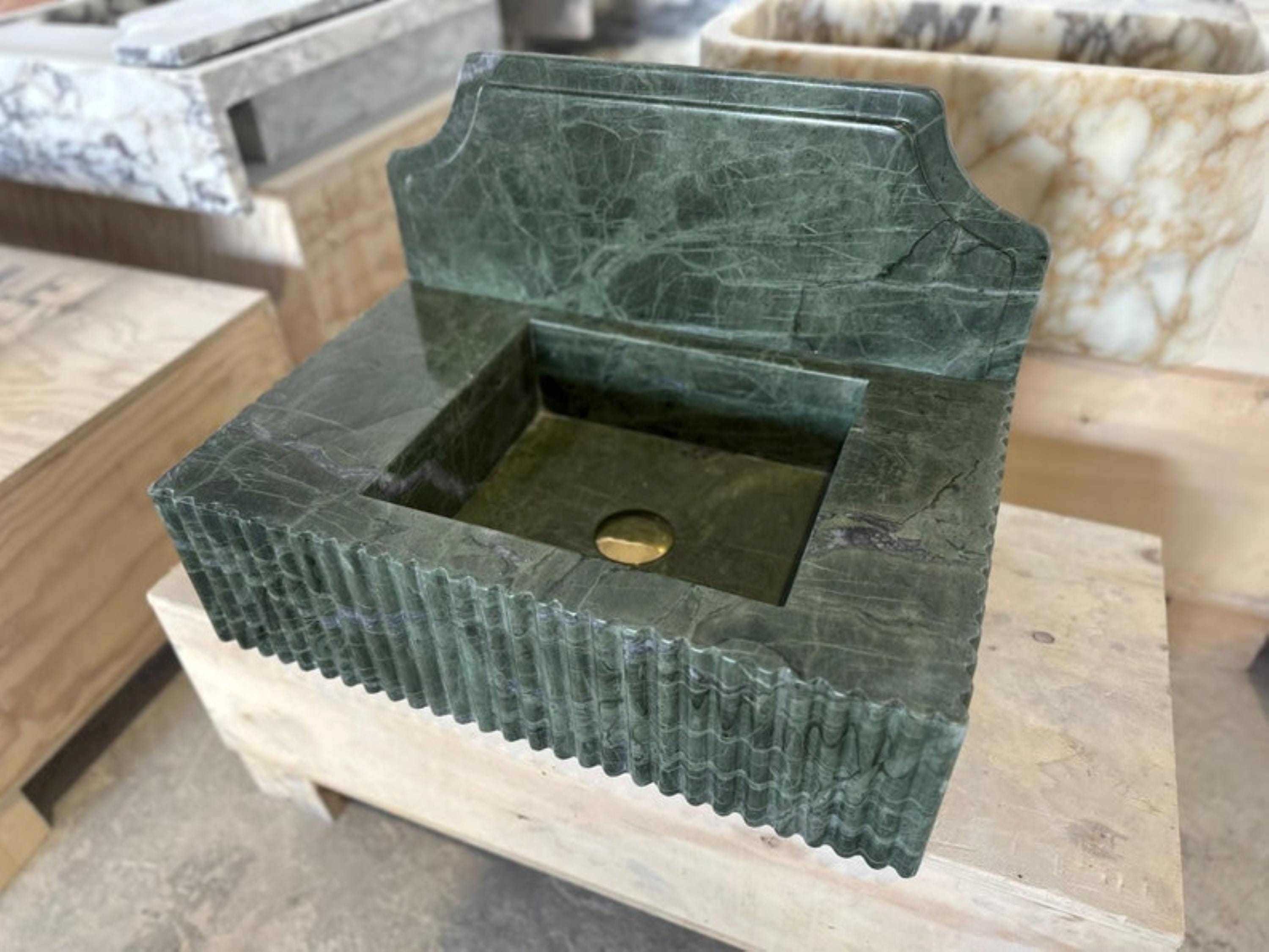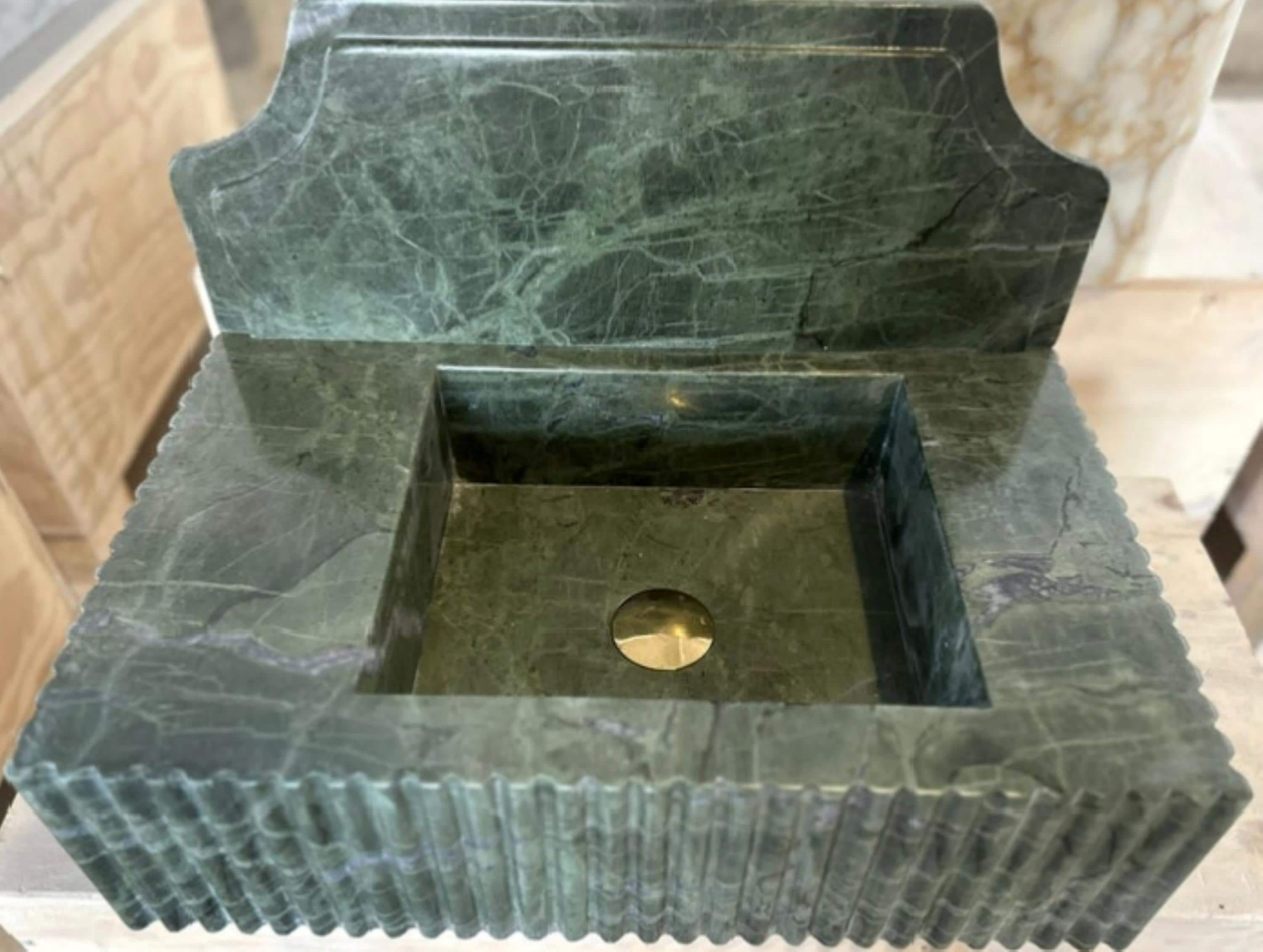 Add timeless beauty and a bold natural touch to your interior with this handcrafted green marble sink, where elegance meets functionality.