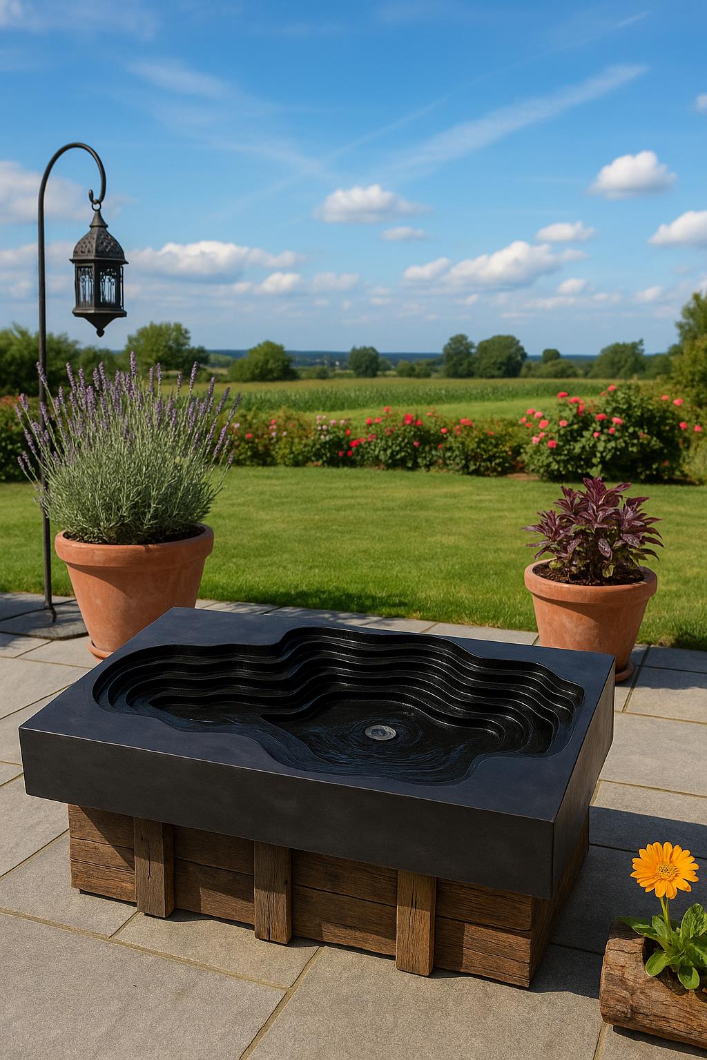 Modern Black Layered Marble Sink – Minimalist Art Basin with Elegant Carved Design