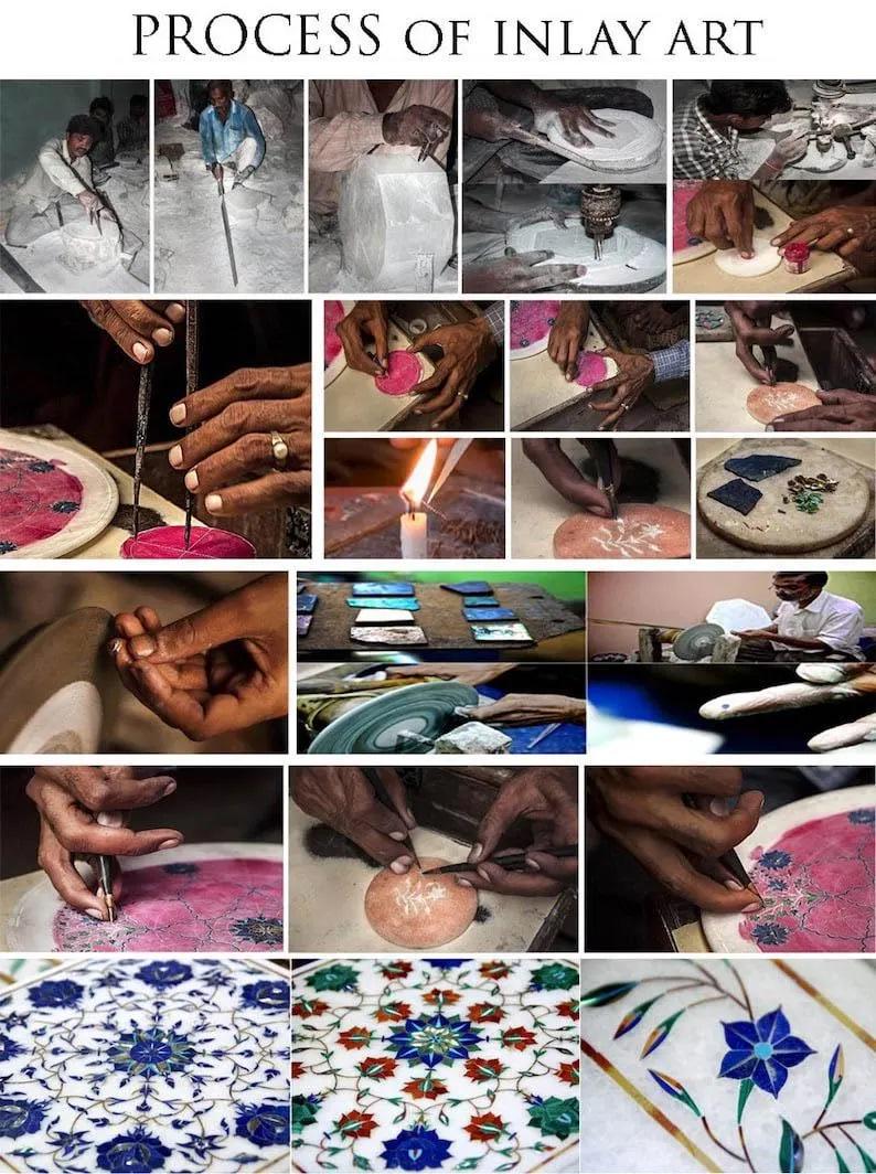 Each tabletop is individually handcrafted, ensuring subtle variations in natural stone and inlay work — making every piece unique.